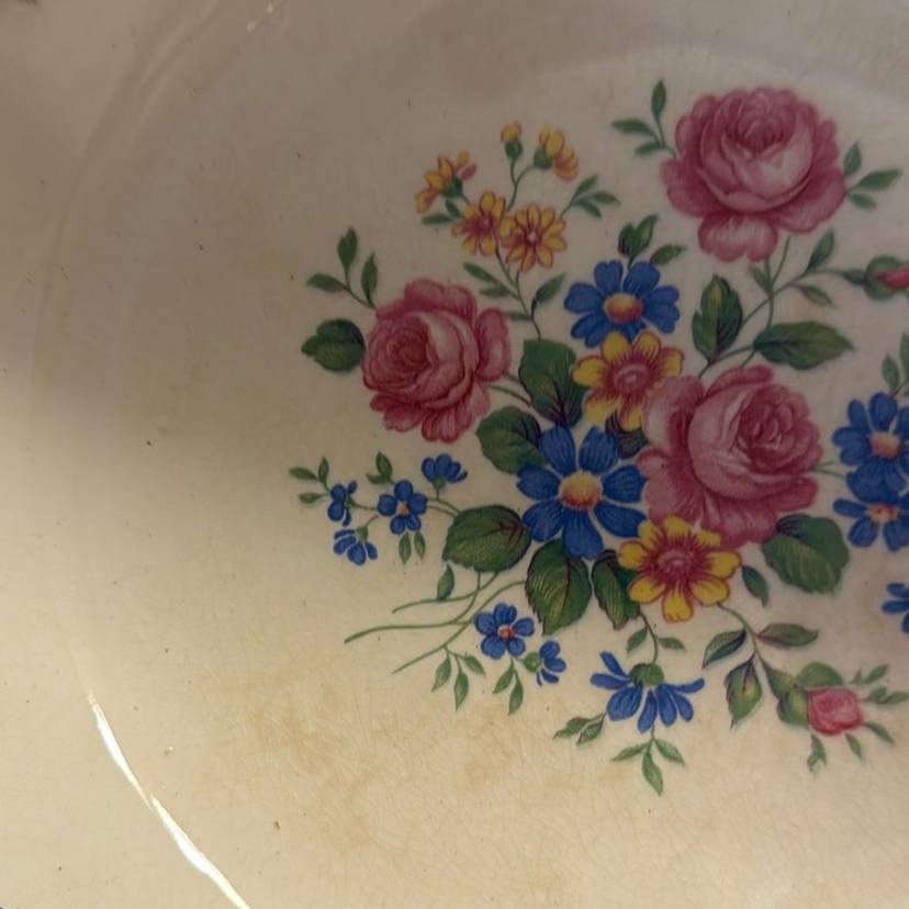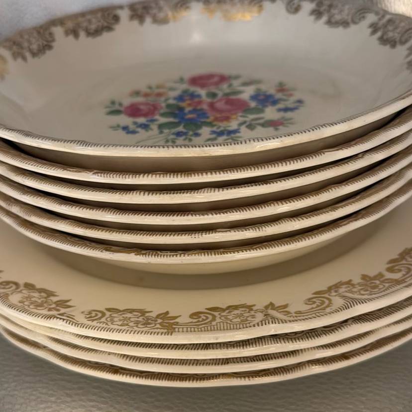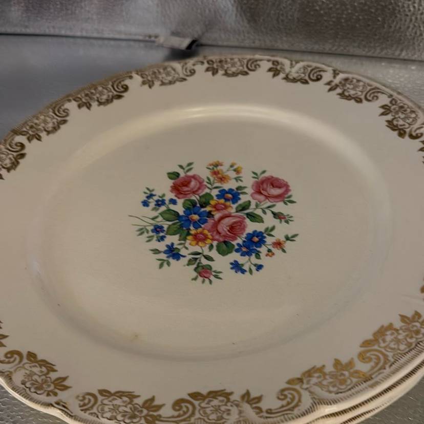 This has 22 k gold trim. They were made in the USA. These plates and soup bowls are stunning.