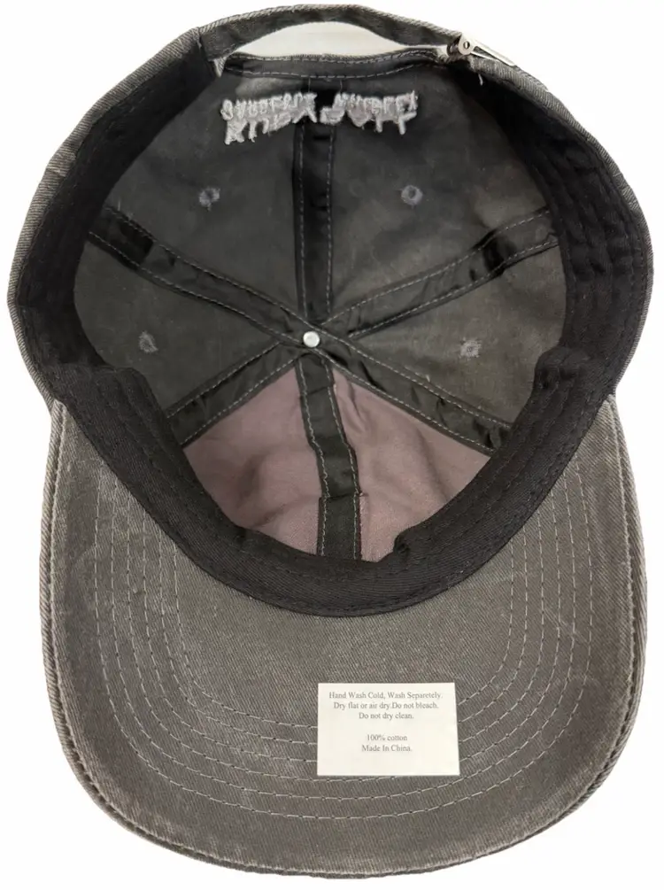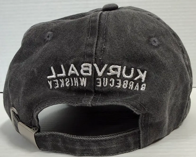 NWOT The Kurvball Barbecue Whiskey Skull Logo Black Distressed Denim Adjustable Hat is a stylish and versatile accessory suitable for both men and women. Made from lightweight and packable cotton fabric with a canvas texture, this baseball cap features a solid black color with a whiskey-themed design, perfect for casual outings, travel, or activewear. The adjustable fit ensures a comfortable and secure wear, while the spooky skull logo adds a touch of flair to the overall look. Perfect for those who enjoy a good whiskey, barbecue, or just appreciate unique and eye-catching accessories.