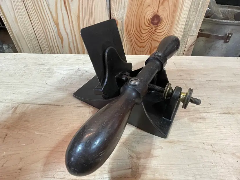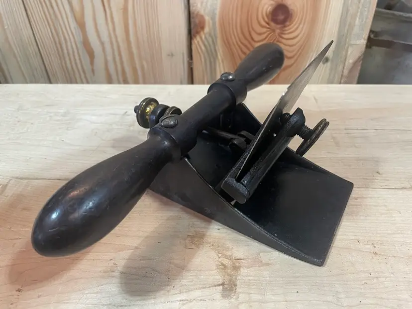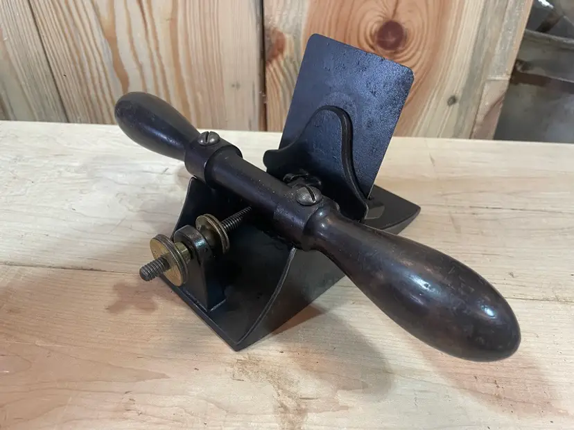 L Bailey #12 Scraper – I believe it is Pre- Stanley . The blade is a replacement fashioned from a saw plate. . . (My #12-040424-1)