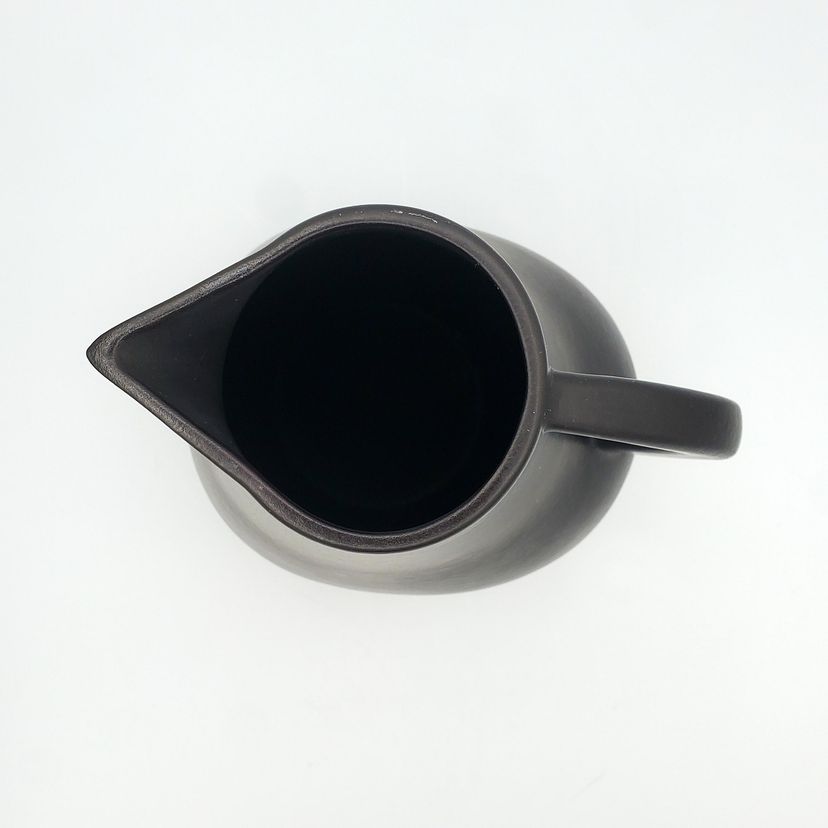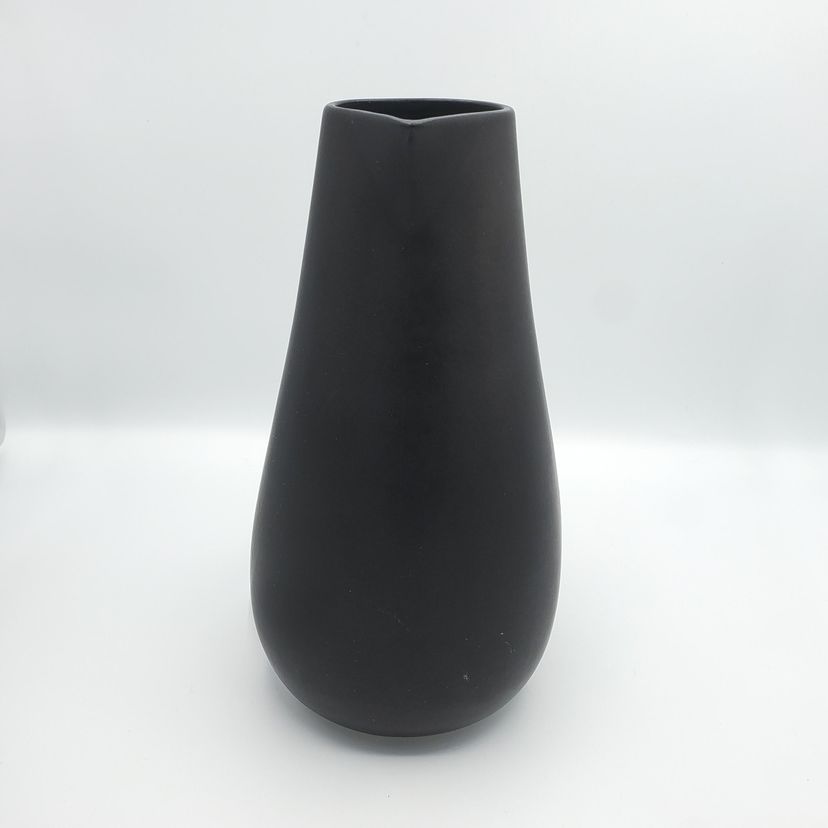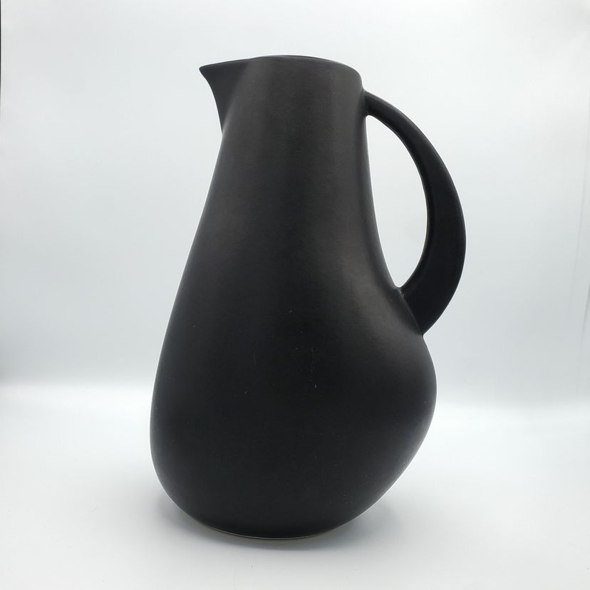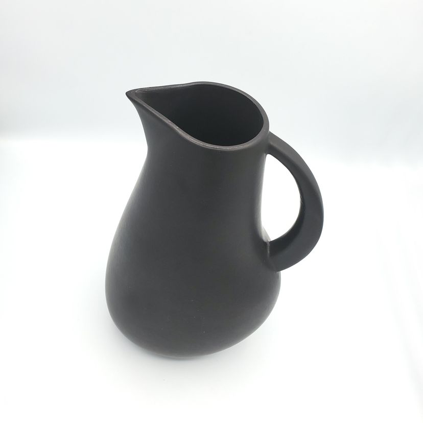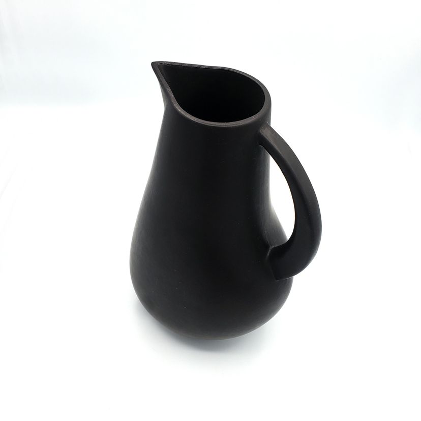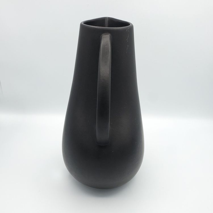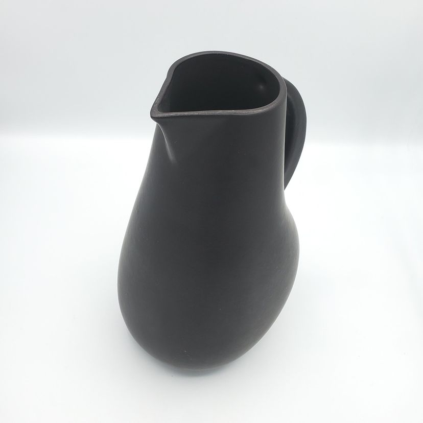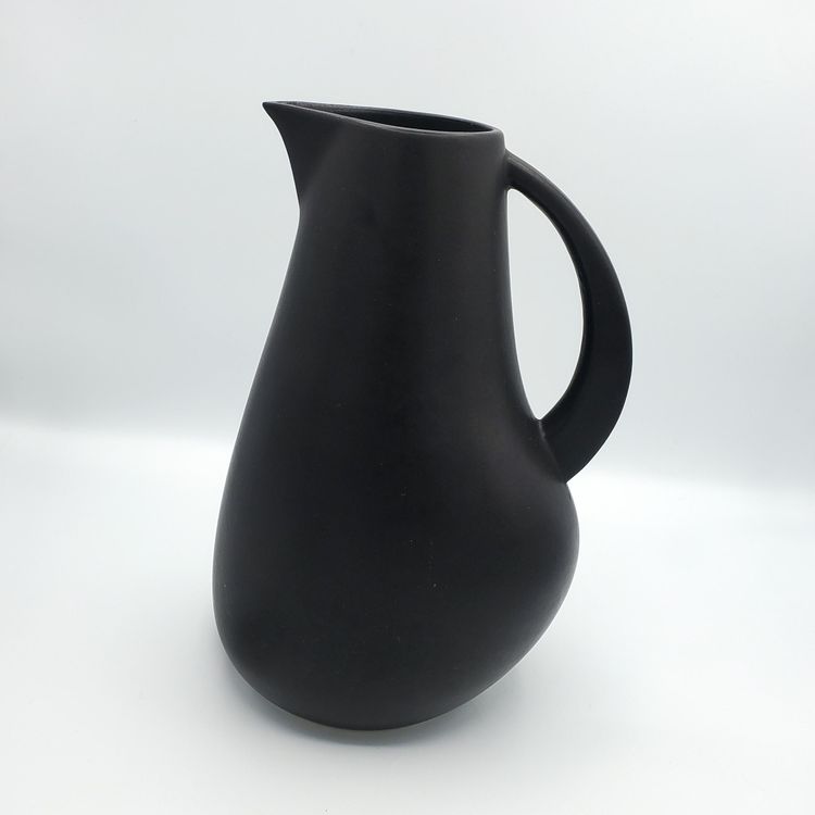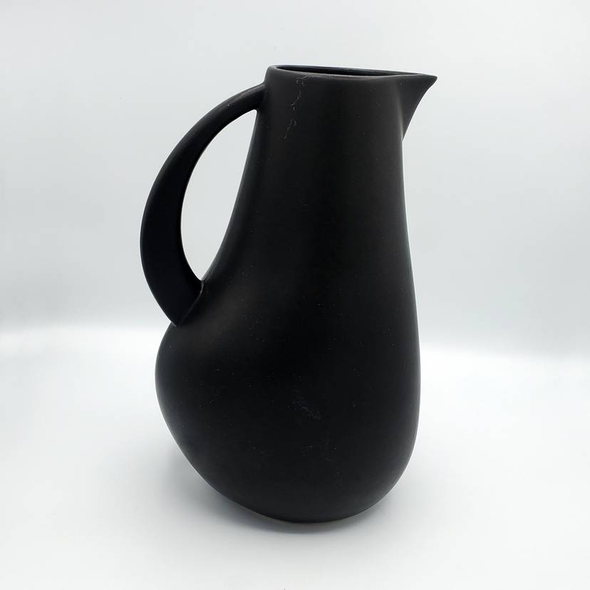 This sleek black ceramic pitcher features a modernist design with smooth, clean lines. Standing 9.6" tall, it's perfect for serving beverages or as a stylish decor piece. The matte finish adds a touch of sophistication to any setting. Dishwasher & Microwave safe. The photos are showing up a bit dark. The last few photos are more accurate for the color reference which is a flat black. Thanks for looking!