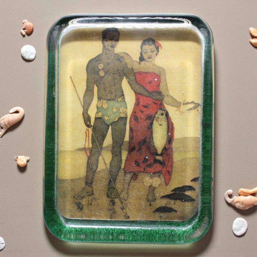 Lahaina Maui Giclee Print Glass Paperweight 4 1/4”x3 1/8”x3/4”. No chips or cracks.