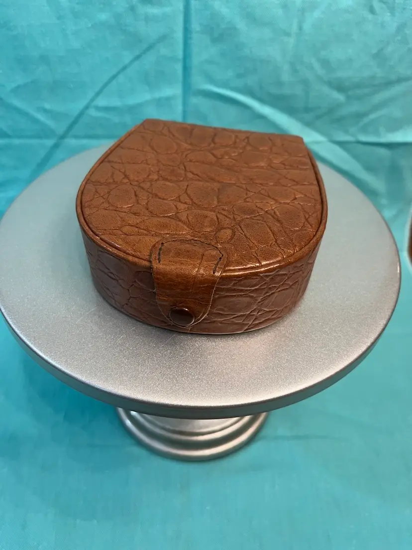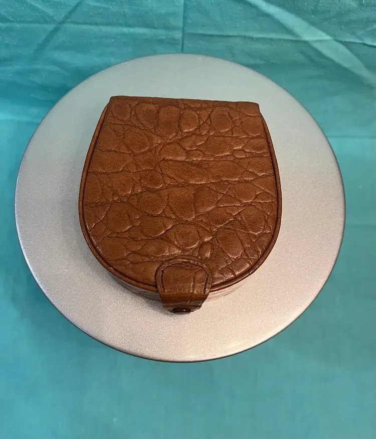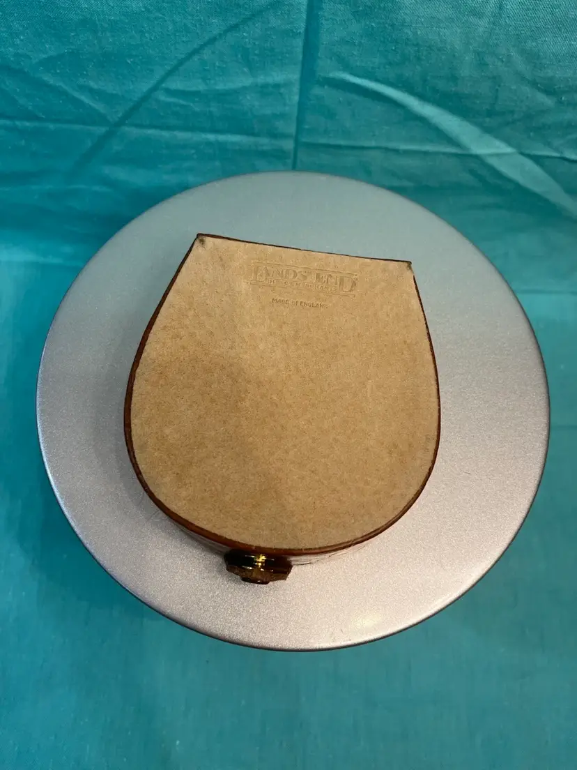 #833 Lands’ End Brown Leather Travel Organizer with 3 compartments inside. Measures 4.5” x 4.25” x 1.5”. Doesn’t look like it was ever used!