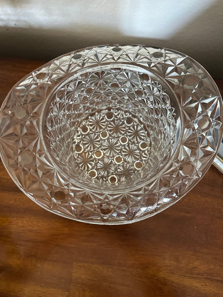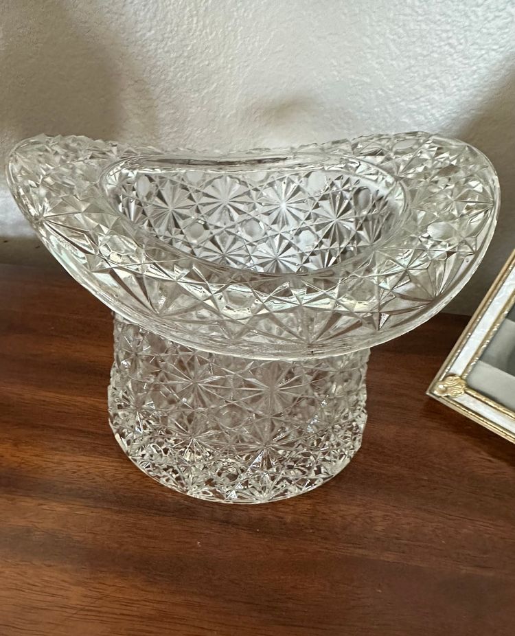 Very large clear glass hat Appx 9” tall x 8” wide In excellent condition with no chips or cracks.