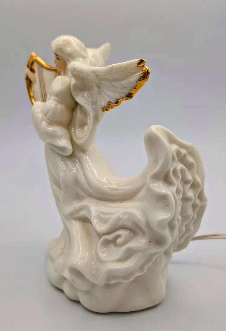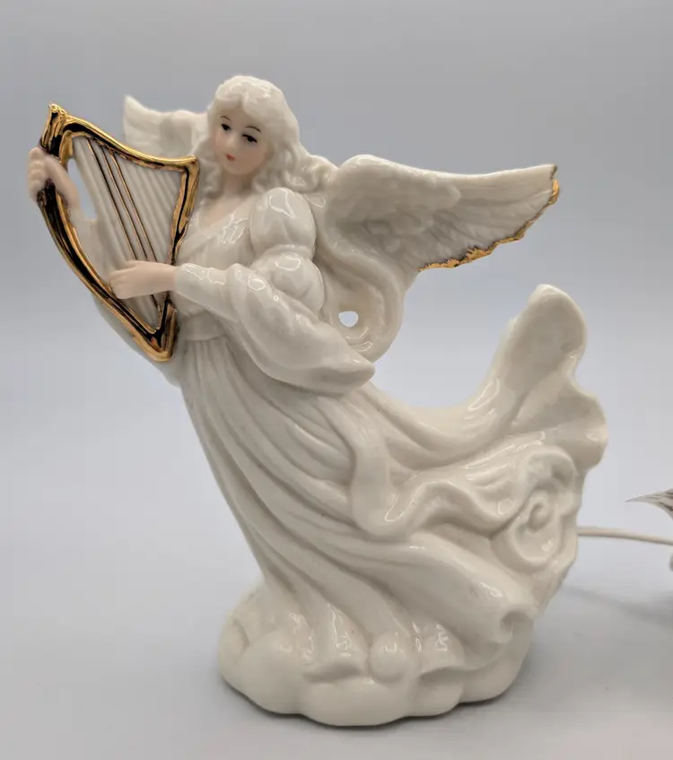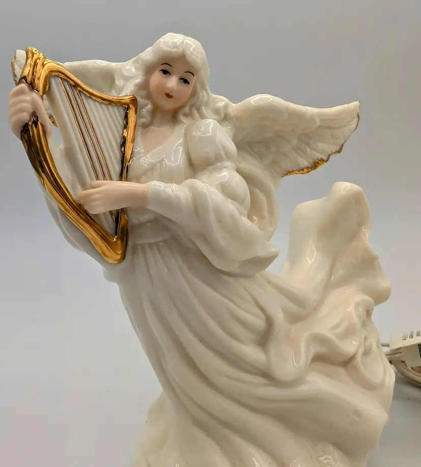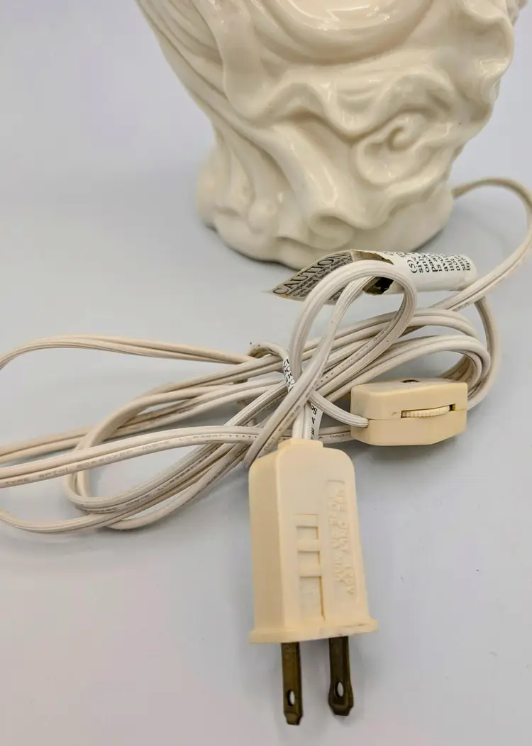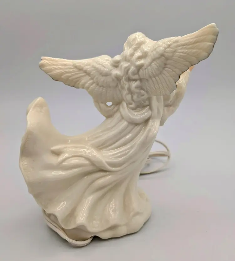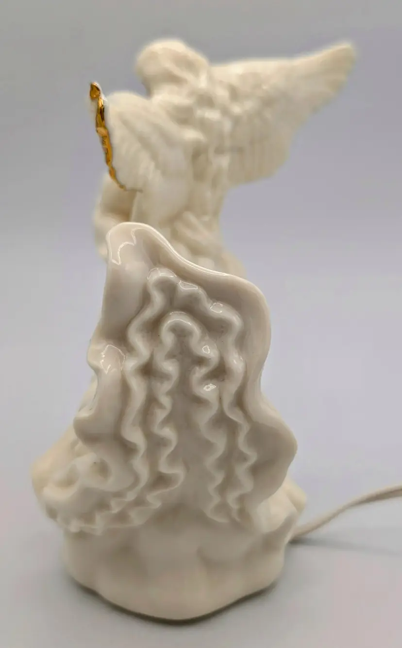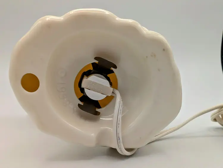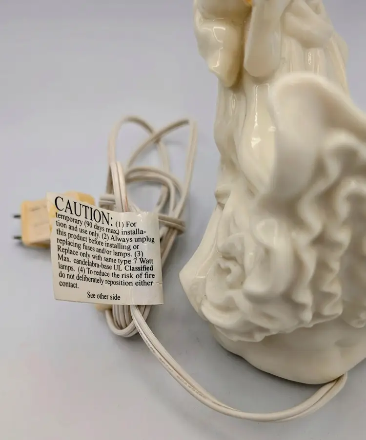 Stunning! Hand painted face. Excellent Used Condition. No chips or cracks. 8" high x 6" long x 5" wide. Toggle switch and plug are good working order.