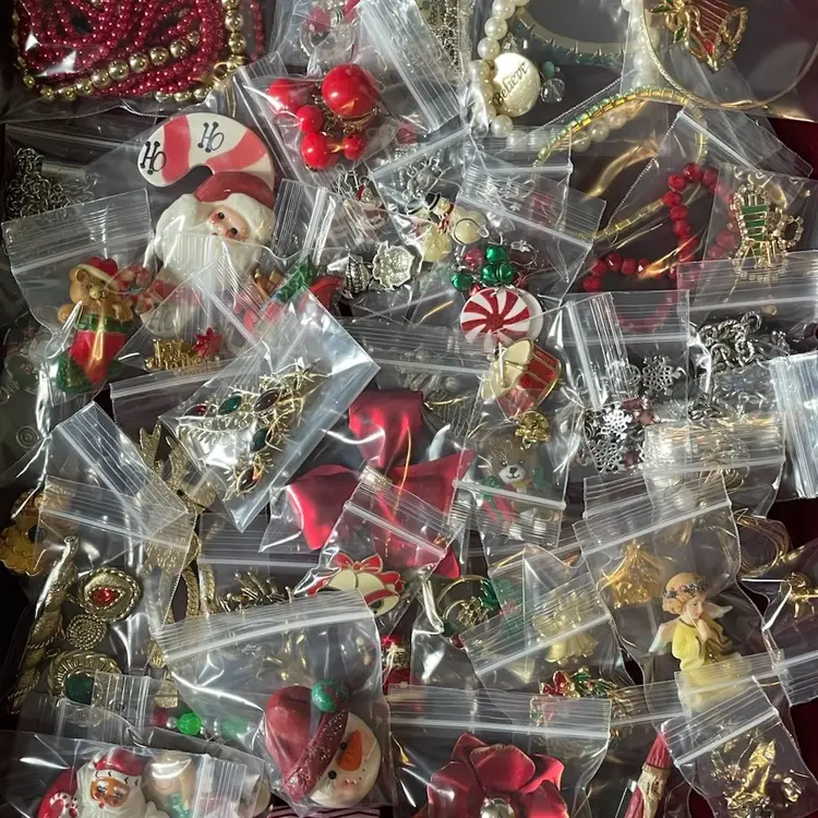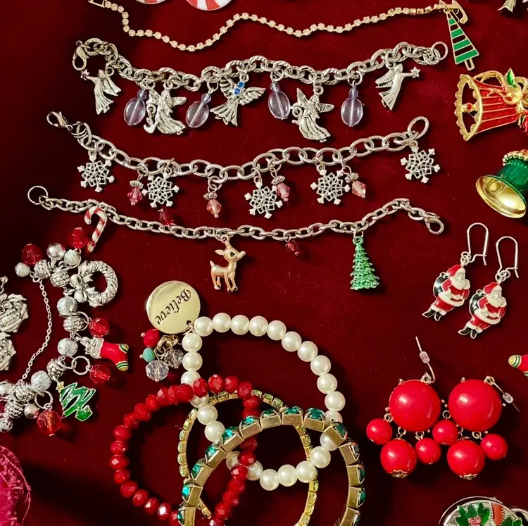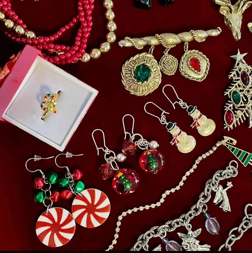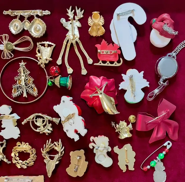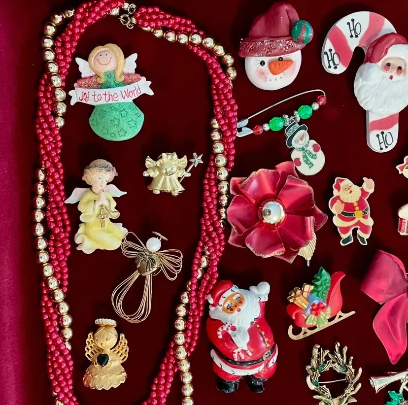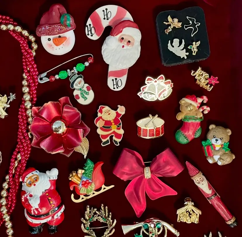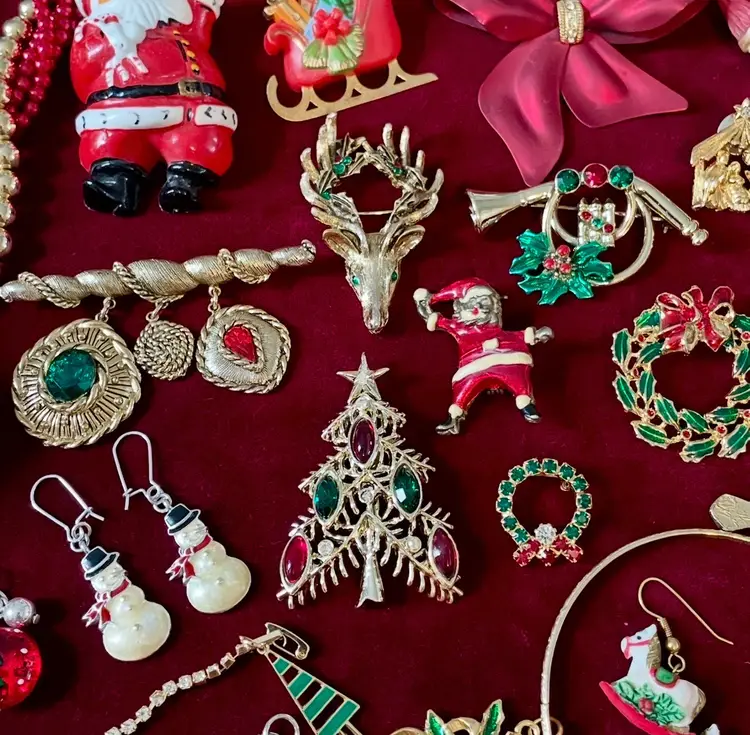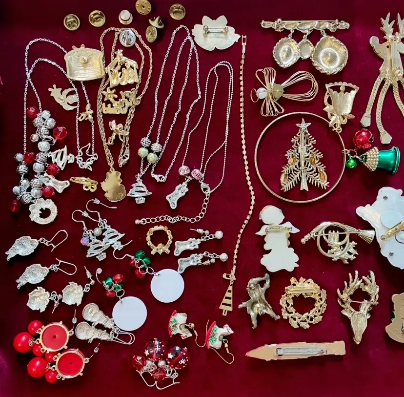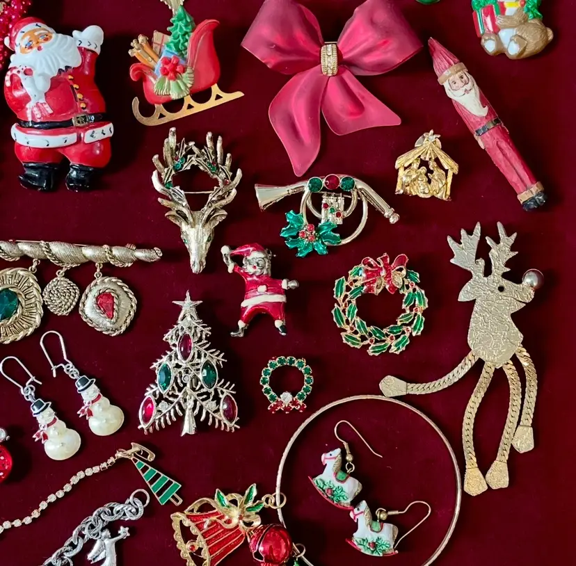 55 piece (mostly vintage) Christmas Holiday costume jewelry lot including: