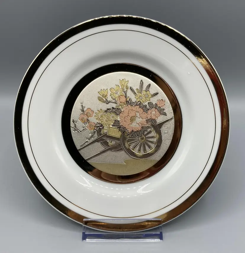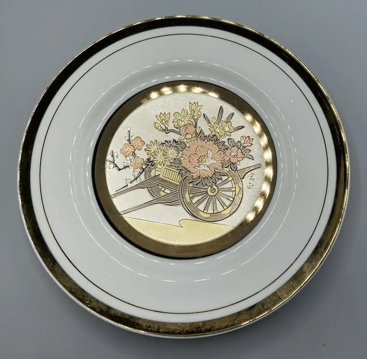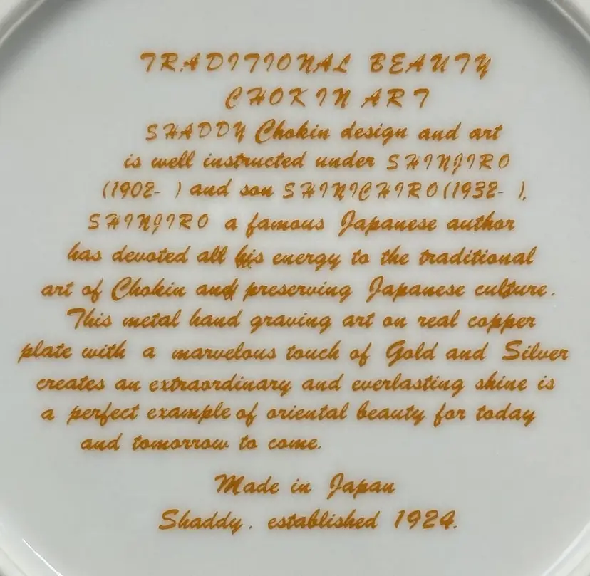This plate is in good condition. It does have some light wear which is visible in the pictures. This plate measures approximately 6 1/4" across.