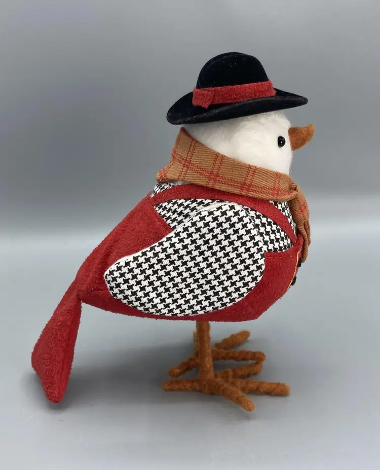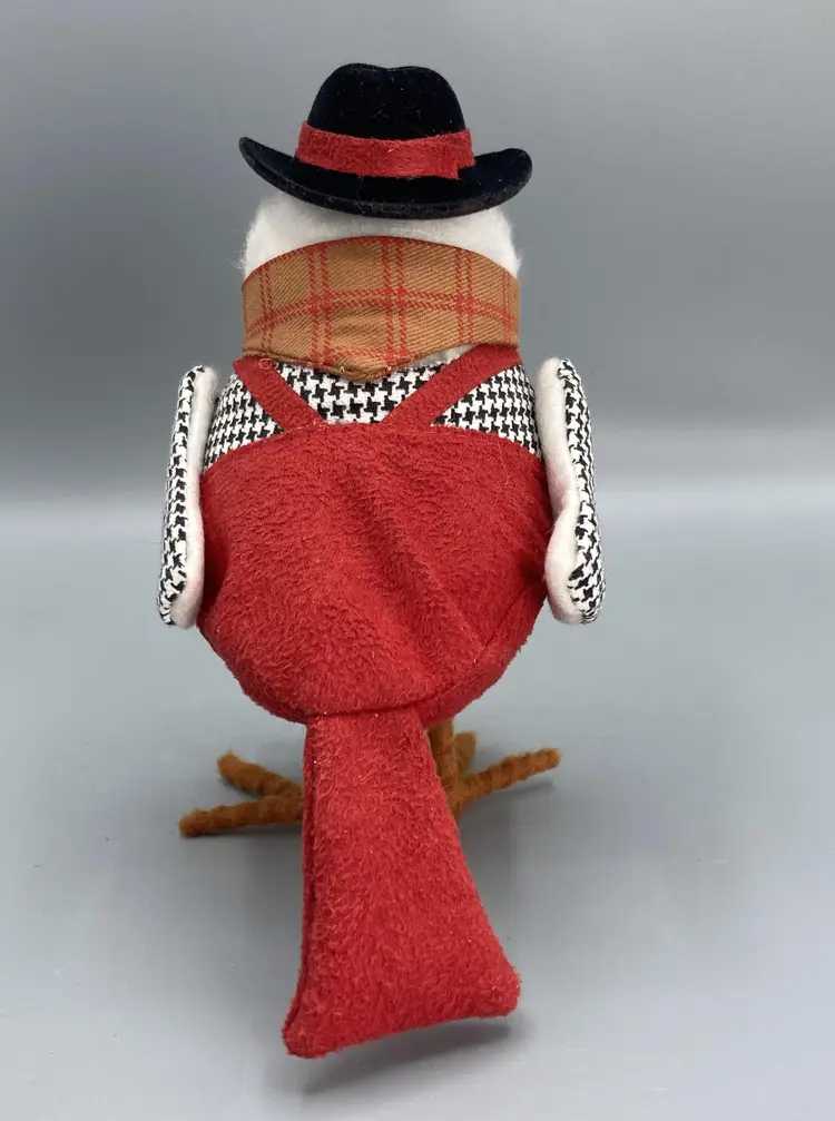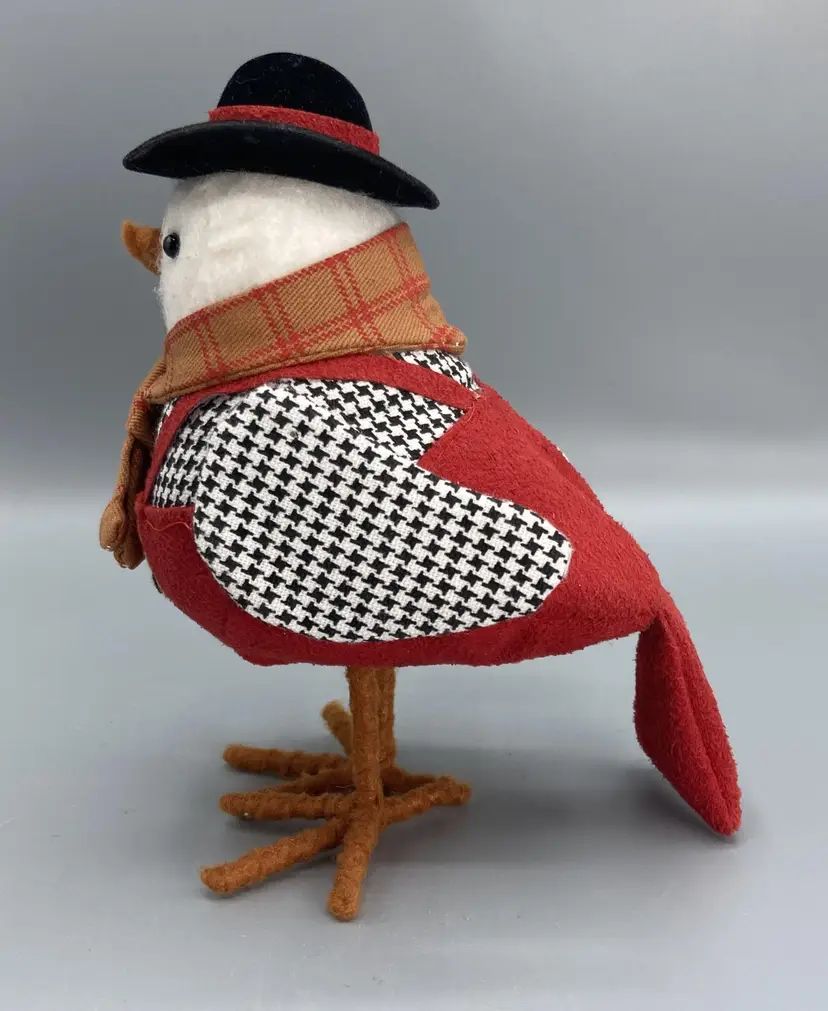 This bird is in good condition. It measures approximately 6 1/2" tall and 6" long from tail tip to beak tip.