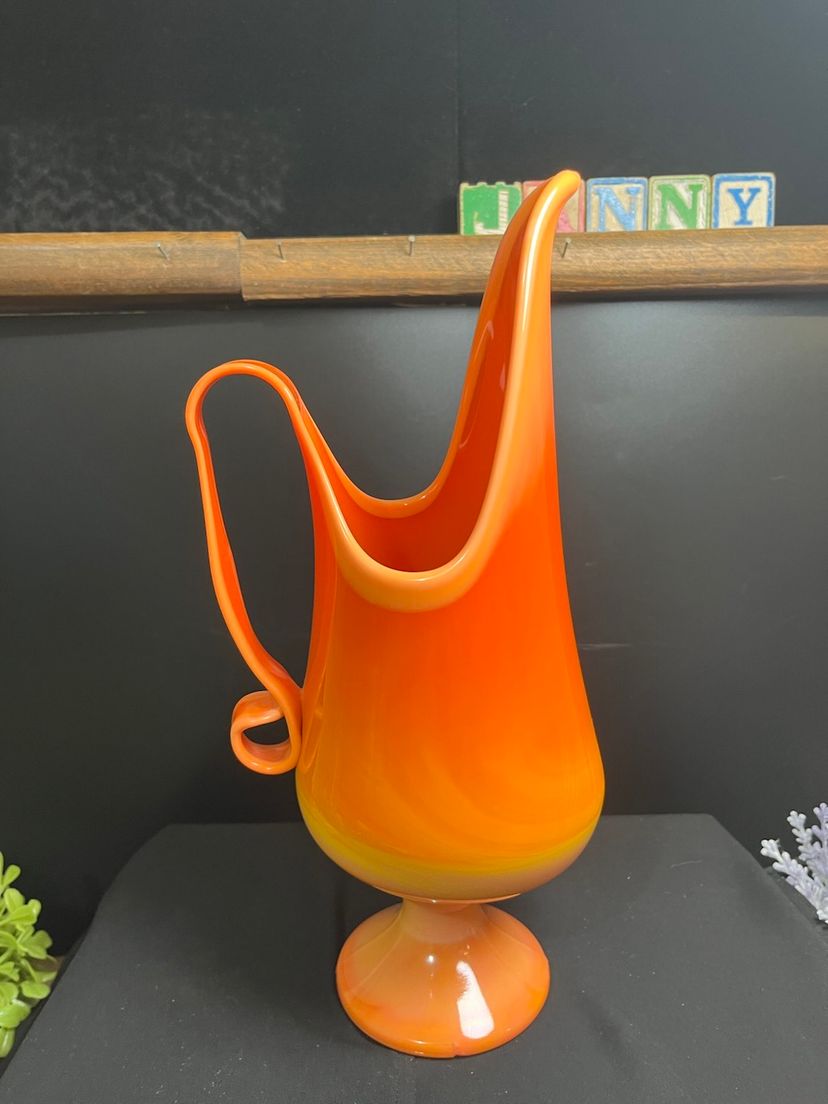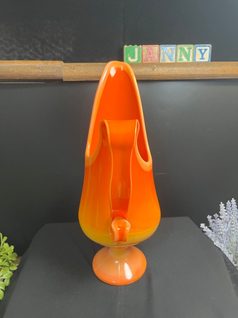 This is also absolutely gorgeous. Of course, orange is right up there for favorite colors. The slag design in this is phenomenal. It is in excellent vintage condition, no chips, cracks, bruises. Measures approx 12" H, 4.5 Diameter, 5.5" Deep, 2 1/2 Lbs. this will ship alone