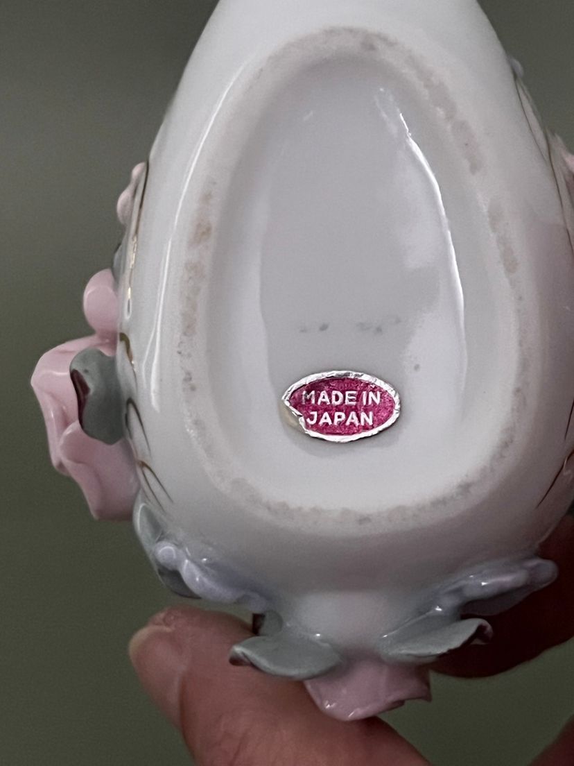 This vintage porcelain swan figurine trinket jewelry dish features delicate hand-applied flowers in pastel pink, making it a charming piece for all occasions. Made of fine bone china with a glossy finish, this 4-inch swan trinket dish from the 1950s is decorated with gold leaf, adding a touch of elegance to any collection. Crafted in Japan by the renowned brand Lefton, this collectible item exudes a retro charm with its floral design and swan subject, making it a timeless and decorative addition to any home.