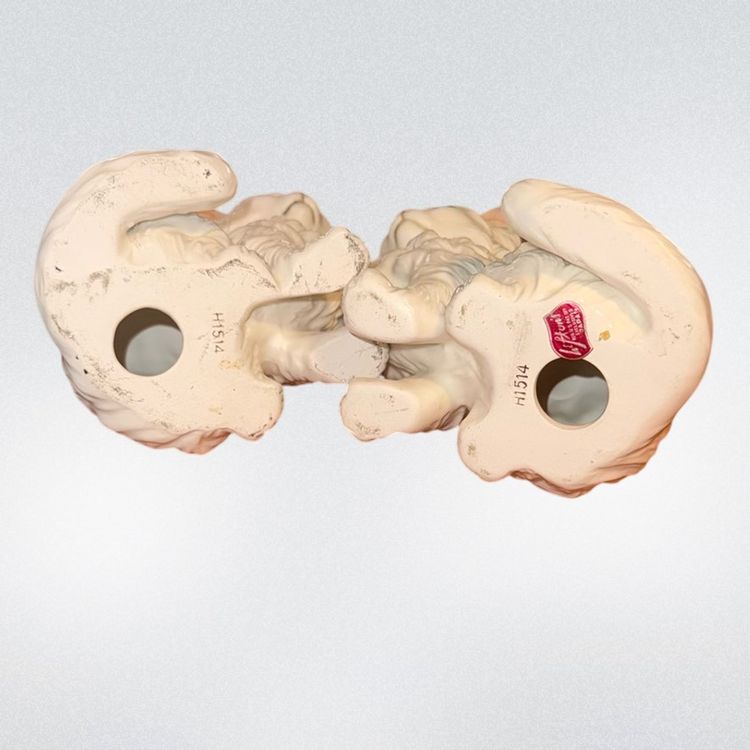 Vintage Japan Lefton Ceramic. Marked H1514. One with Red foil sticker intact. Beautiful mirrored figurines. Excellent condition. 5.5” tall.