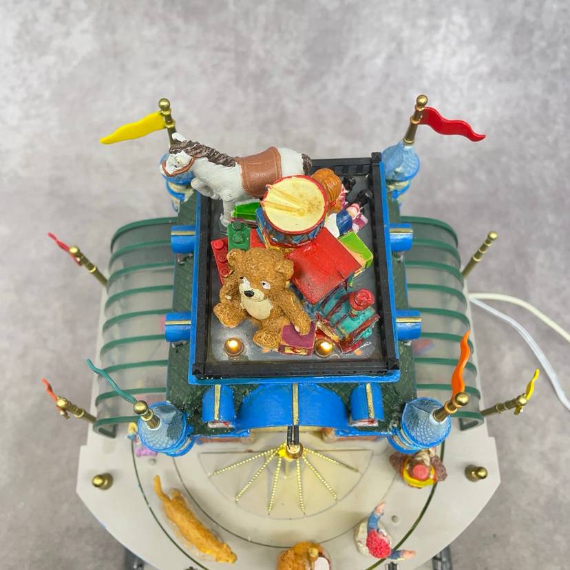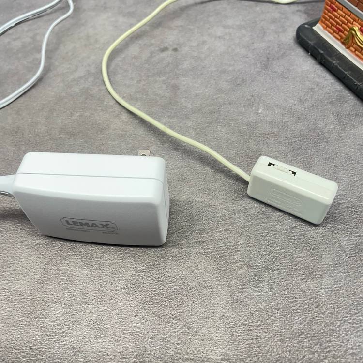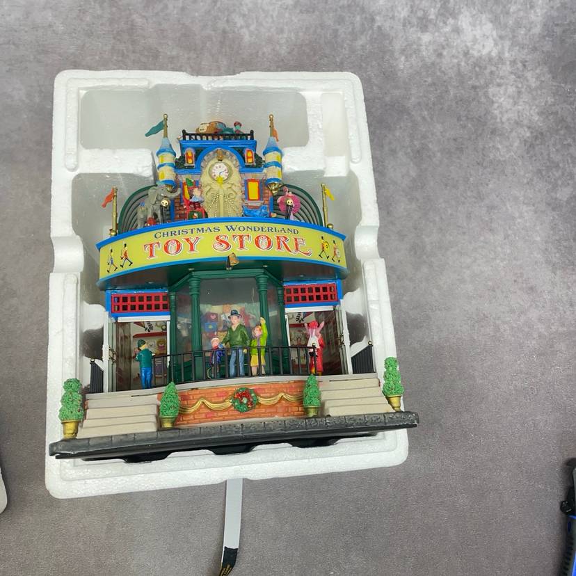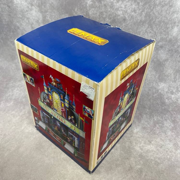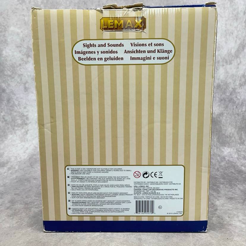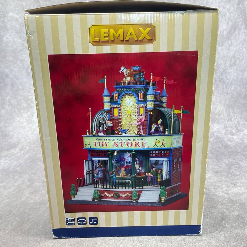 See video for more description of item. Includes power adapter and box. Lights up and moves, no sound.