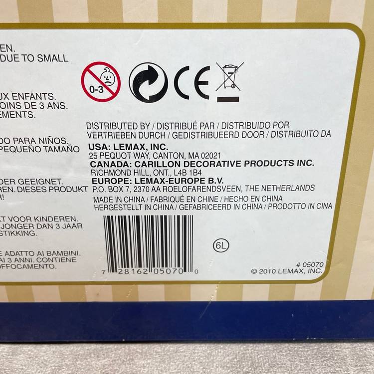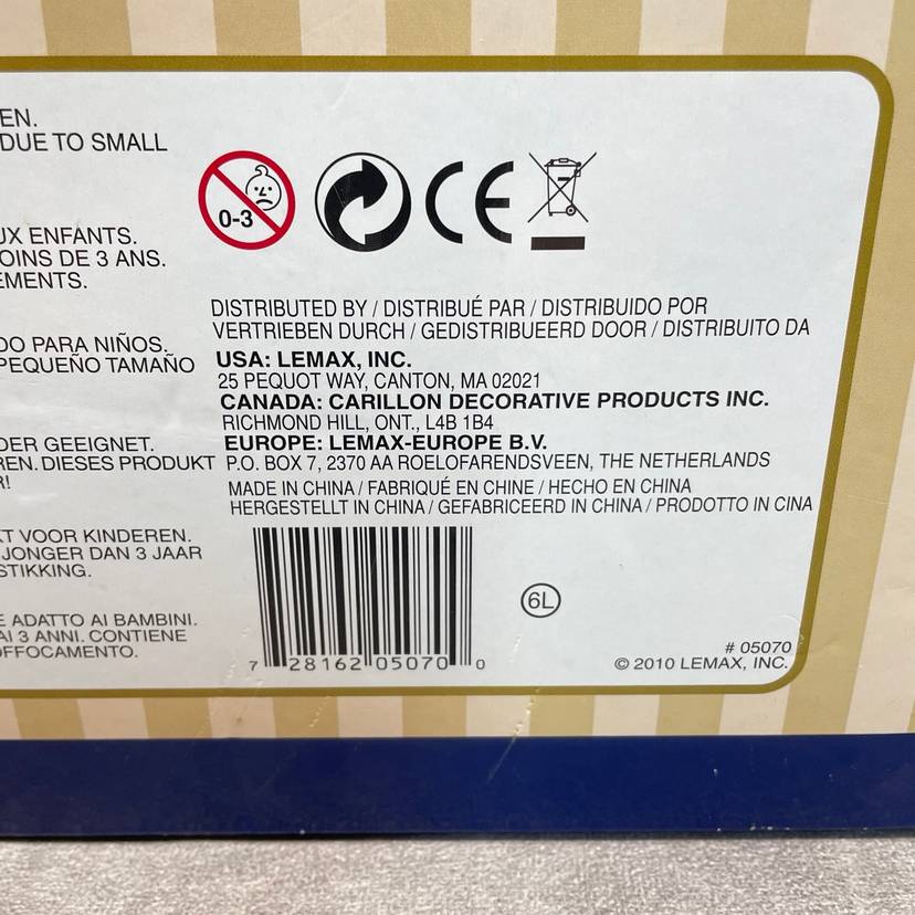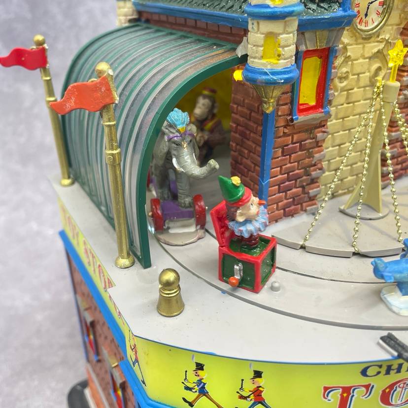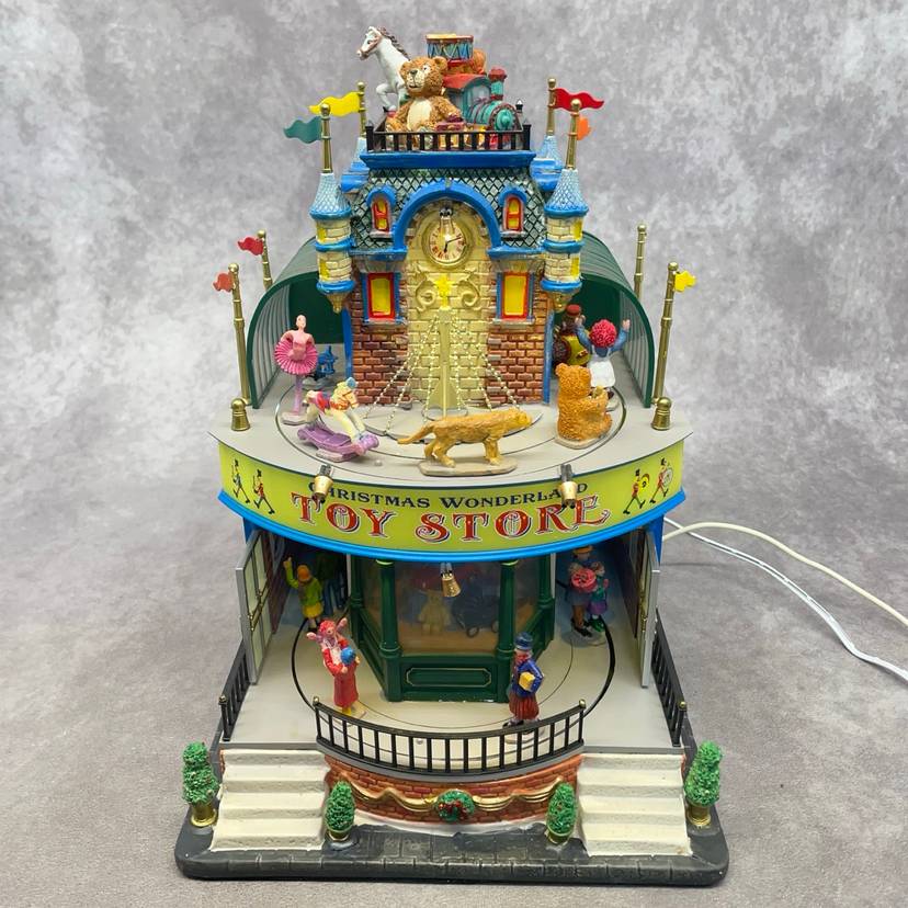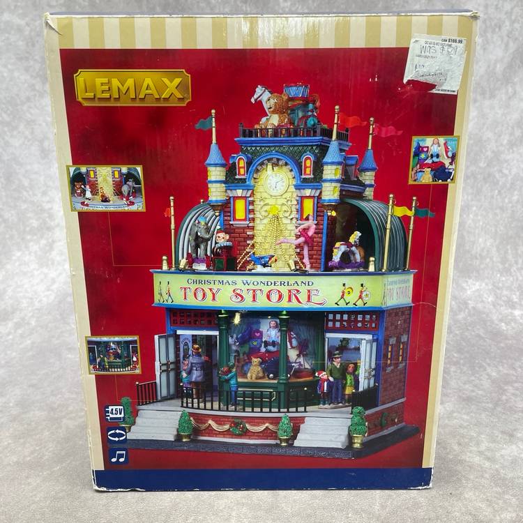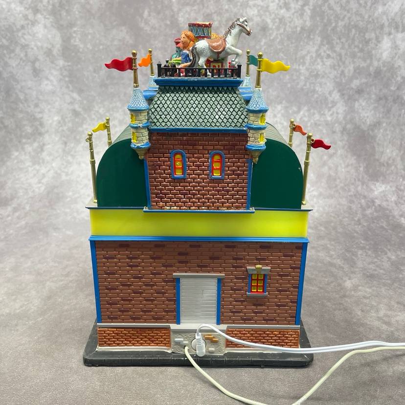 See video for more description of item. Includes power adapter and box. Lights up and moves, no sound.