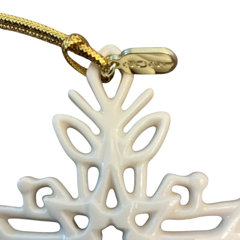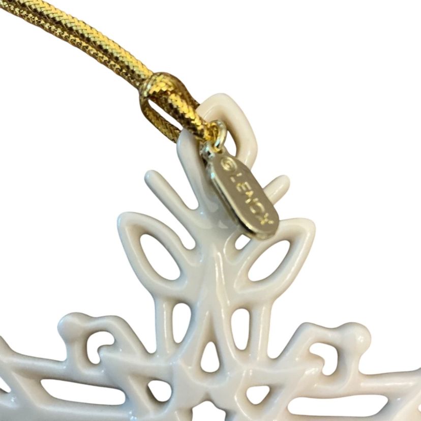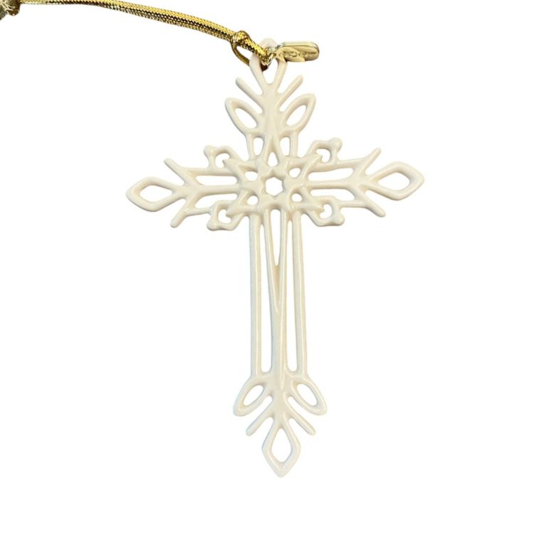 Beautiful ivory porcelain filigree cross. This Lenox ornament has a gold charm with the date 2021 on one side and the Lenox stamp on the other side. This piece would be a nice addition to any Christmas tree. It comes in it’s original box. 4” by 3.”