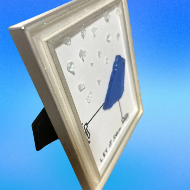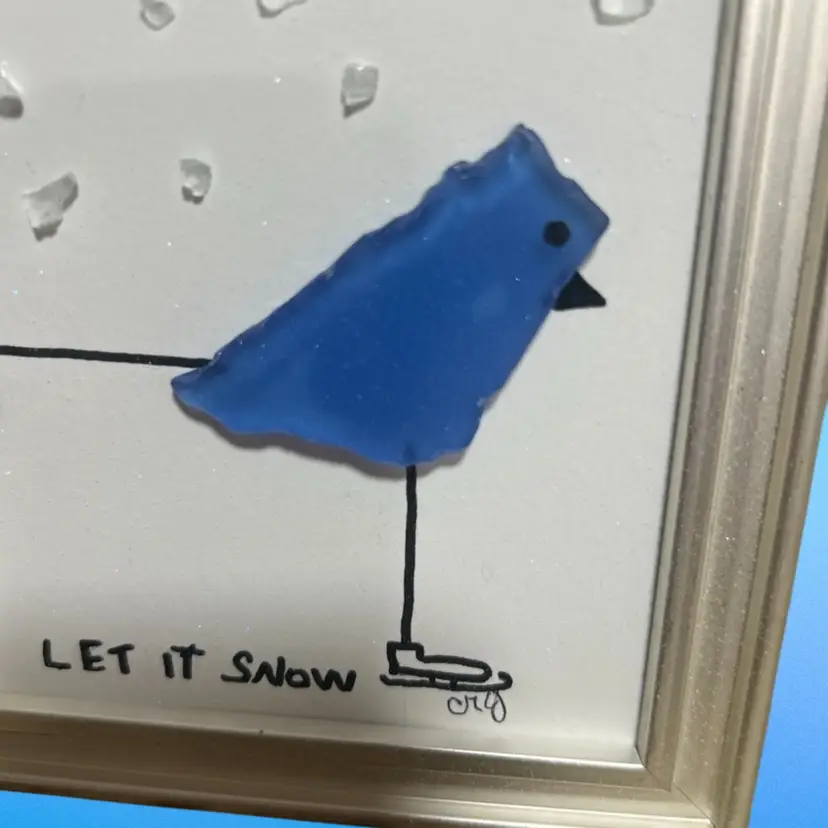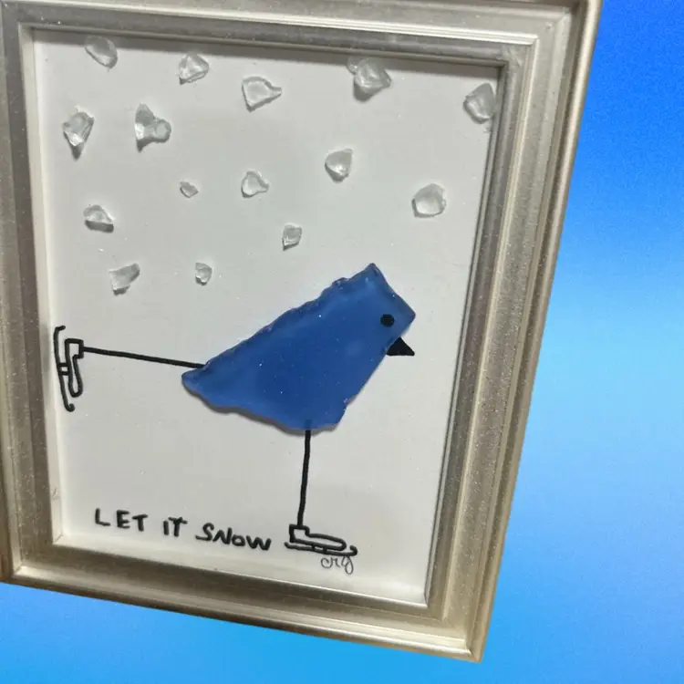 This sweet little penguin skating on ice is made from sea glass that I picked off of Fort Myers Beach Florida many years ago. The snow is also small pieces of sea glass. It measures approximately 6 inches tall by 5 inches wide. I make these two orders so it may not look exactly like the one you see in the pictures. Feel free to reach out to me to customize your own creation!