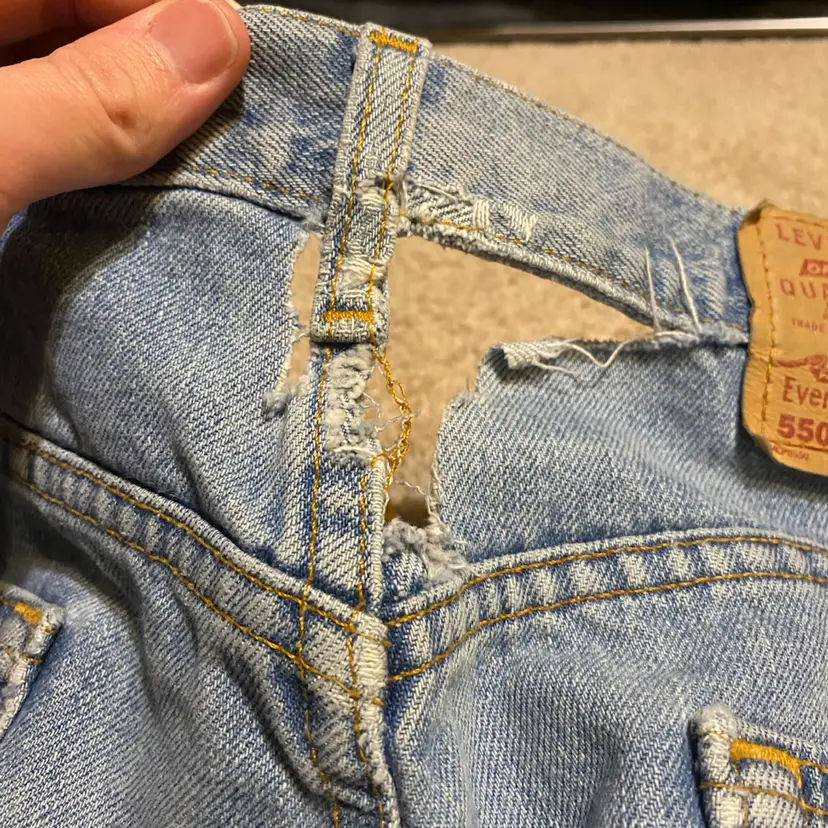 You are purchasing one pair of Men's Size 36x34 Relaxed Fit Denim Blue Jeans by Levi's and their 550 Series. These Jeans are in poor condition. In need of some love and repair or for a buyer who enjoys a very distressed look. See final images showing all notable signs of wear - rips, holes, stains and rusting.