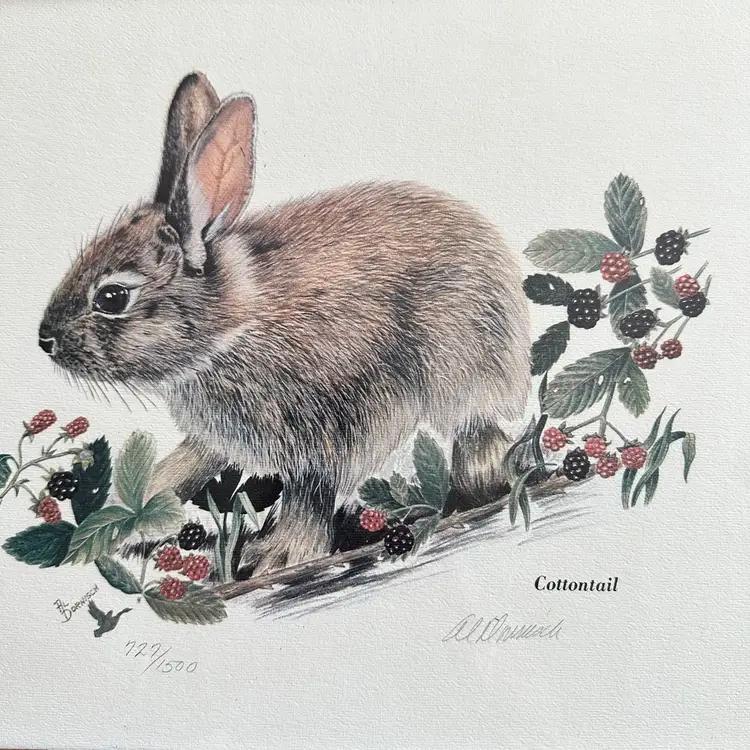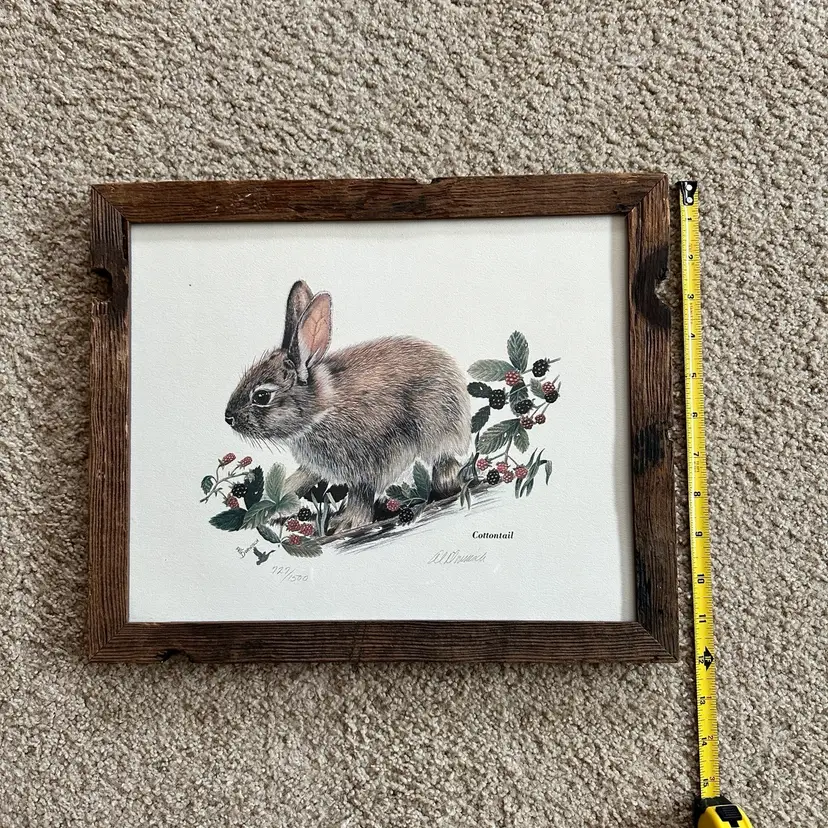 Beautiful rustic framed limited edition, signed and numbered, print of a cottontail rabbit by Al Dornisch
