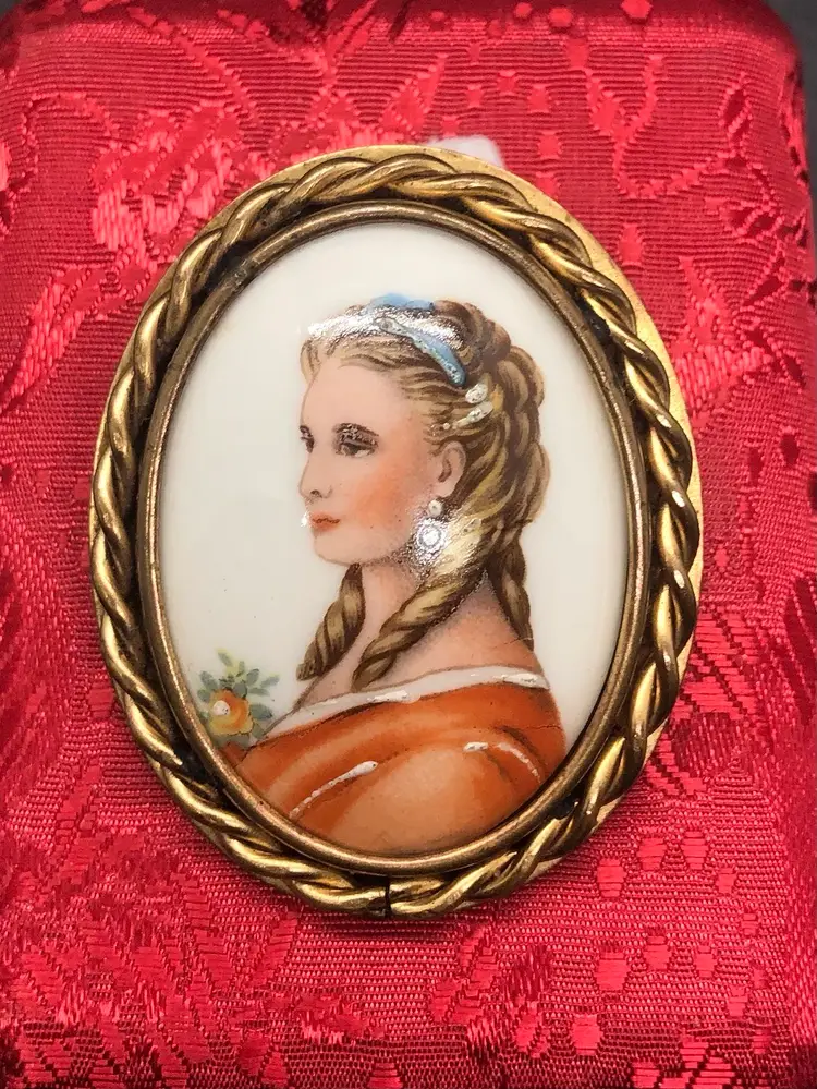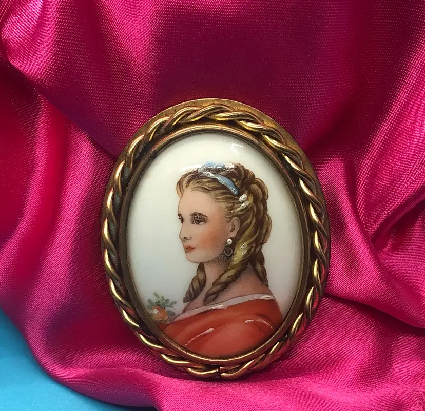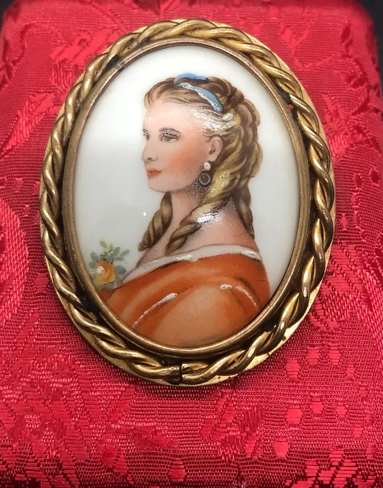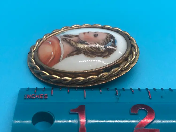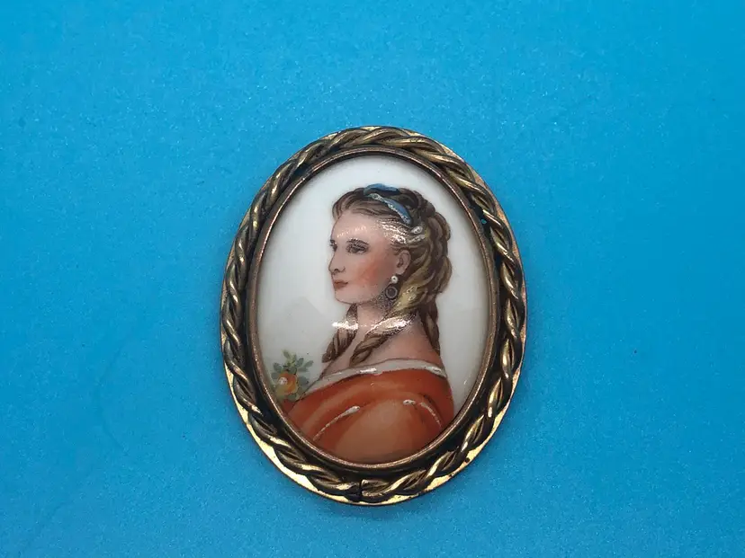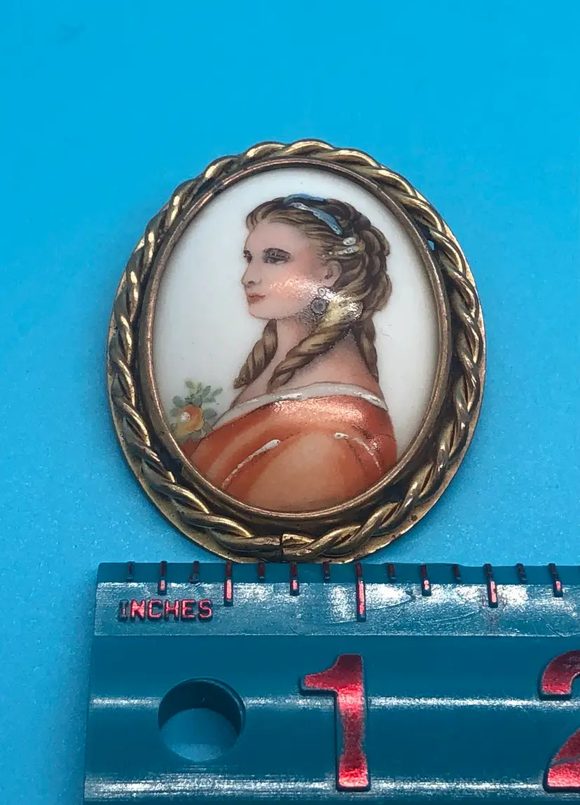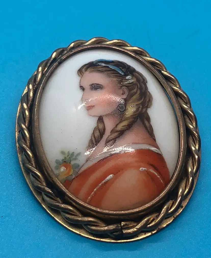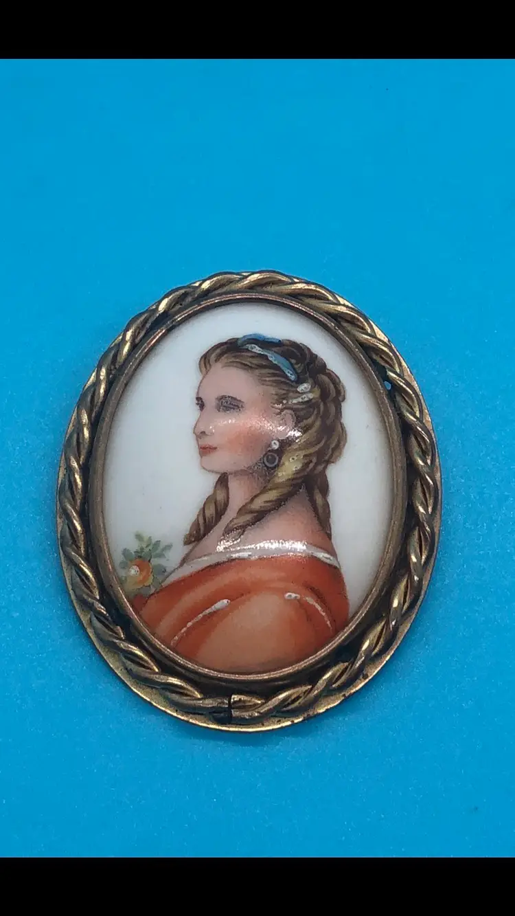 This Limogue France hand painted cameo features a beautiful design on porcelain, set in a gold filled frame. Made in France, this vintage brooch exudes elegance and sophistication, perfect for adding a touch of beauty to any outfit. The intricate details and high-quality materials make it a stunning piece of jewelry for fashion-conscious individuals looking for a unique and luxurious accessory. This Brooch has a Limoges France stamp on the back of the porcelain case. I have tested the metal and it shows 10k but it is not marked so I’m calling it gold filled. I’m not an expert. This came from a estate sale. It has natural age marks and and old scratch mark “France” on the back. Any questions please send me a message. Thank you 😊