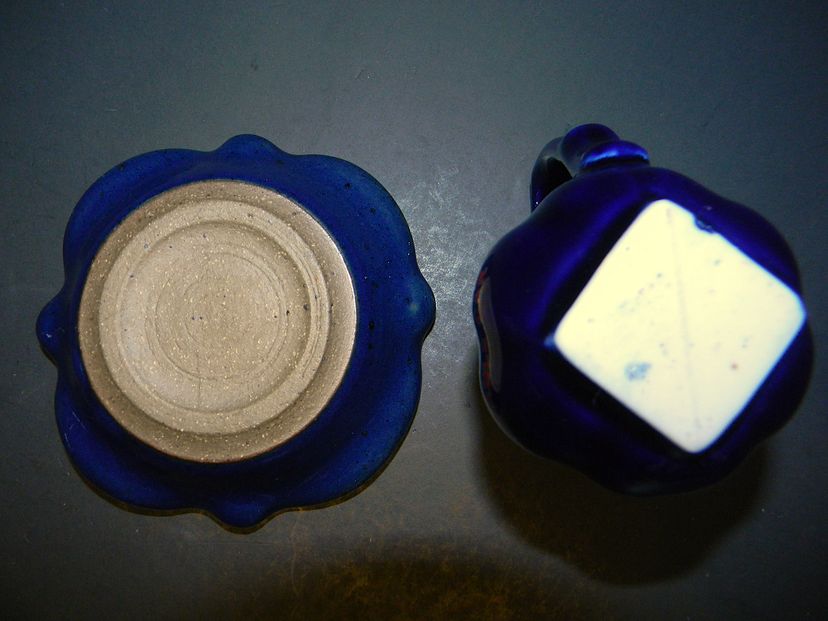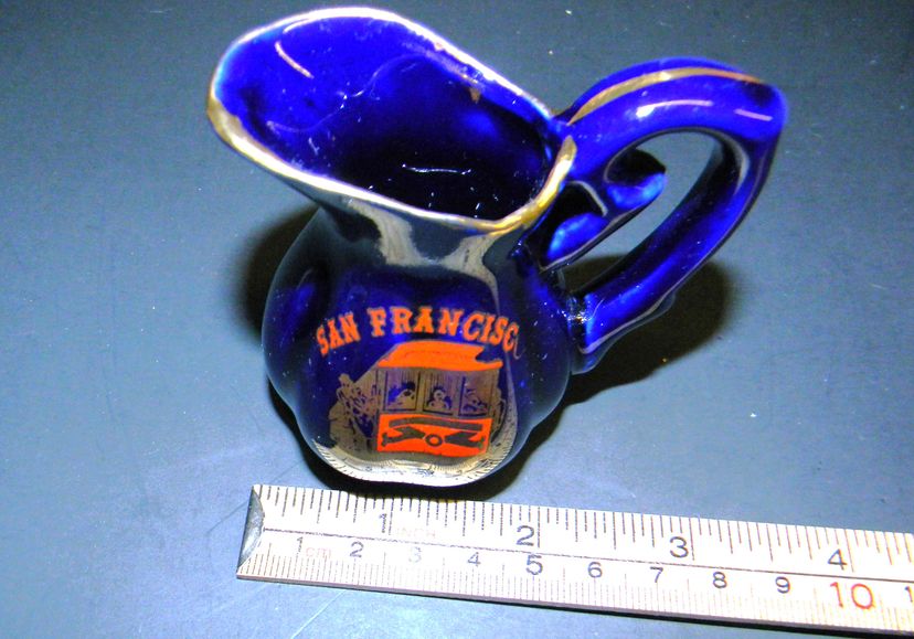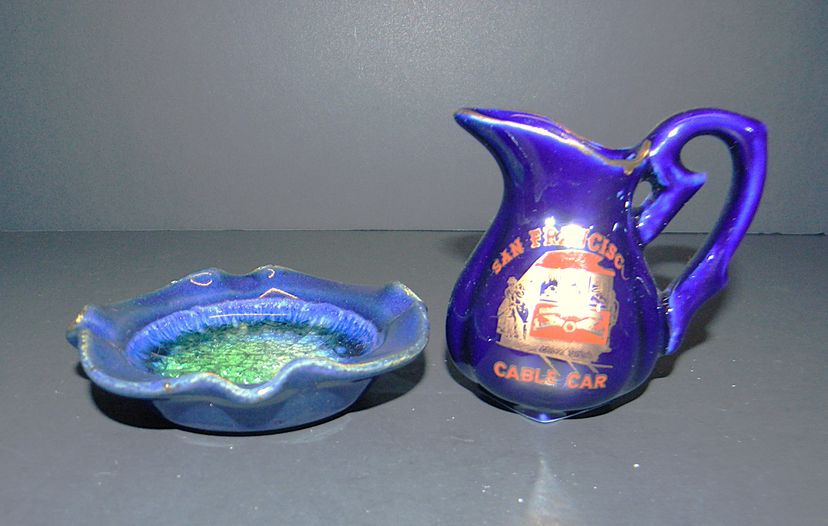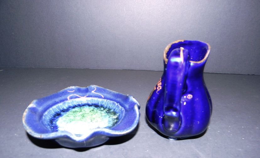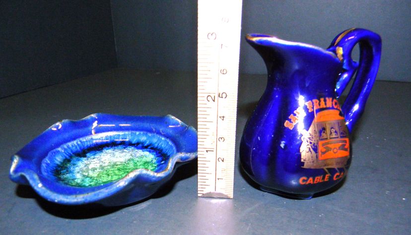 Little Pitcher from San Fransico Blue in color Little Trinket Dish Blue/Green Pitcher has no chips or cracks Dish does look like a scratch in the middle Please see all photos before purchasing used condition
