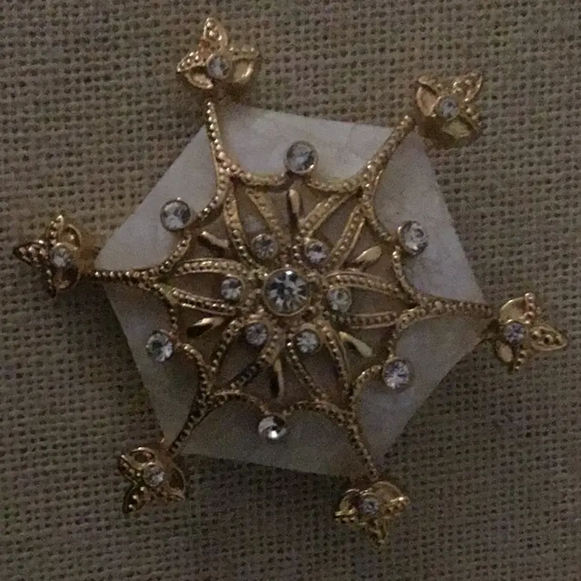 Liz Claiborne Abstract AB Crystal Snowflake brooch. Vtg treasure with stone body sizing at 2” Beautifuly crafted and sparkles