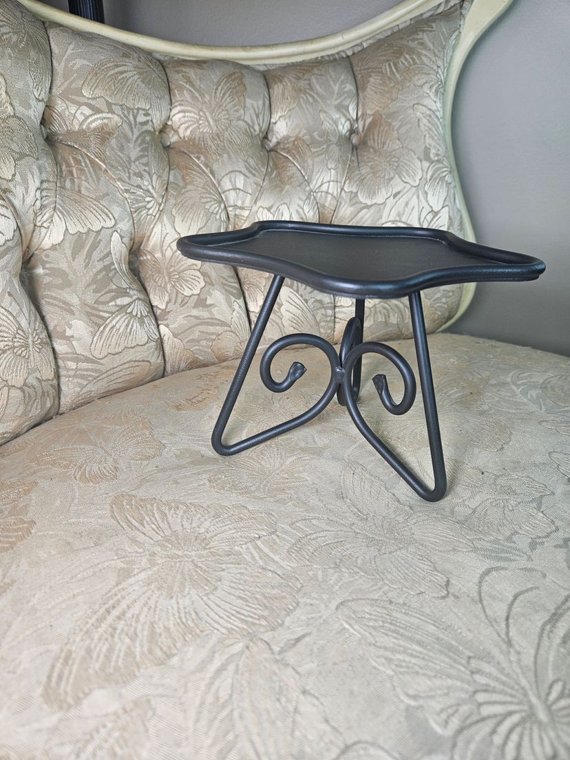 The item in the image is a Longaberger Small Star Wrought Iron Stand. It is designed to hold a Longaberger basket, such as the Hostess Little Star Basket or the 4" Holly Candle basket. The stand is made of wrought iron with a natural iron finish. It was made by Longaberger, a company known for its handcrafted baskets and home decor products. The stand is part of the Christmas Collection from 2001 and is designed to hold a star-shaped basket. The stand is a collectible item.
