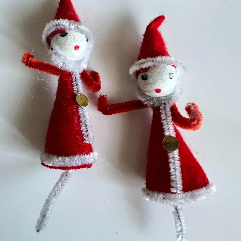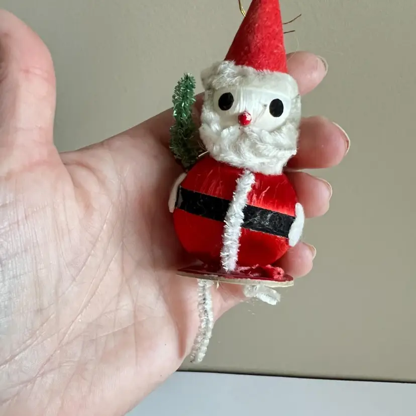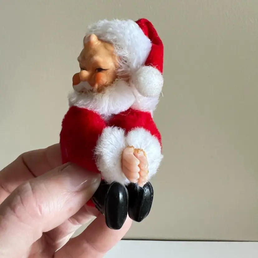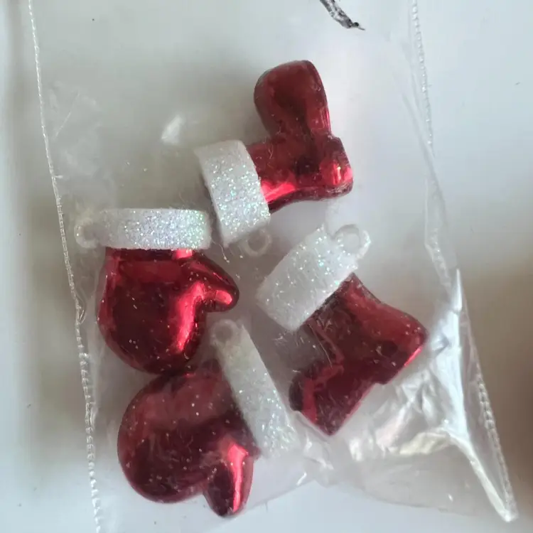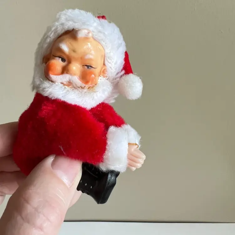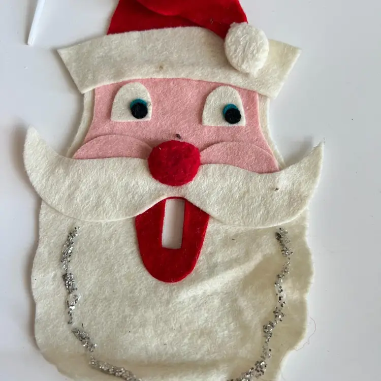 Includes 1 furry Santa squeeze clip 6 plastic santa head cupcake picks 1 plastic santa full body cupcake pick 1 mini flocked santa with chenille beard 1 felt santa light switch cover 1 round head santa 2 spun head santa pics 1 satin ball santa Mini plastic Santa boots and mittens charms