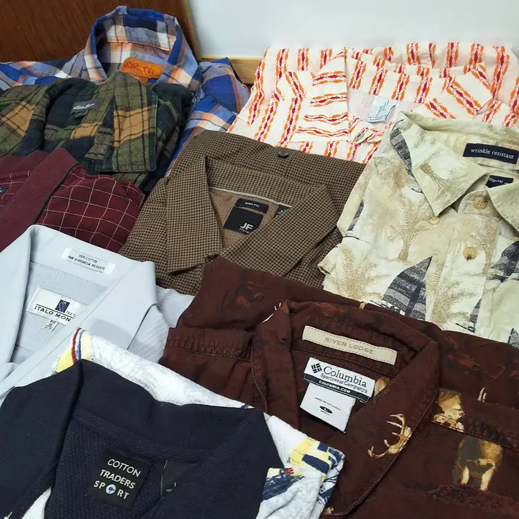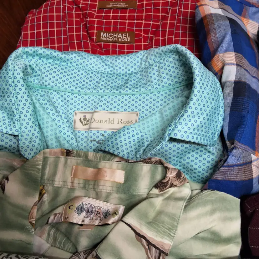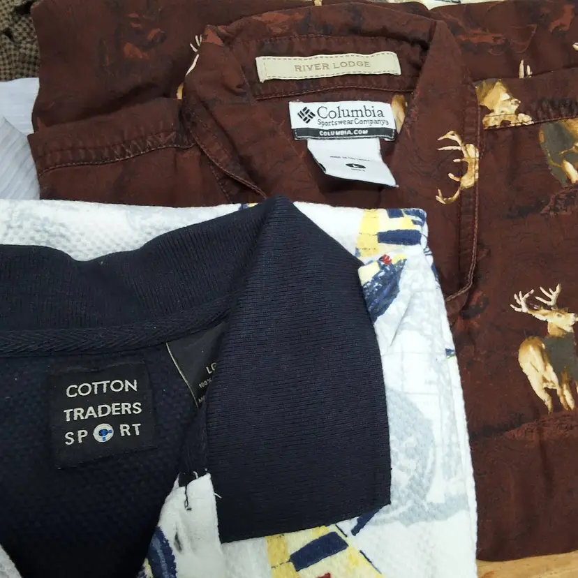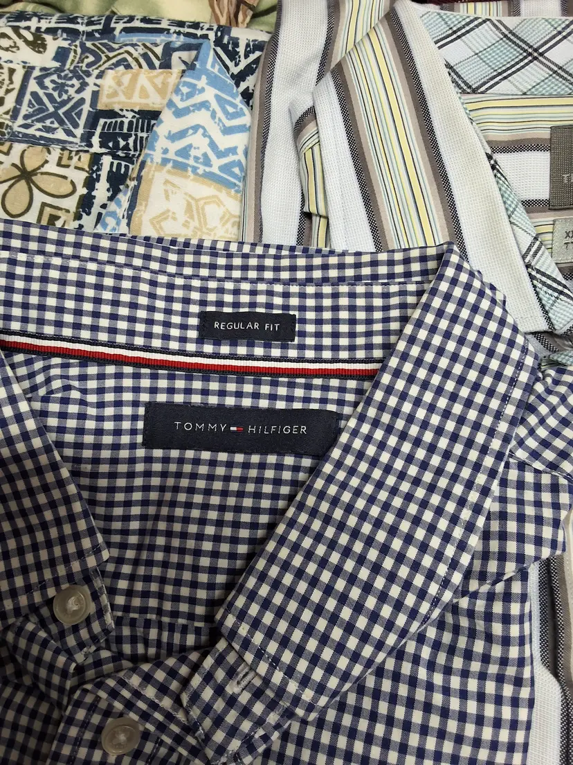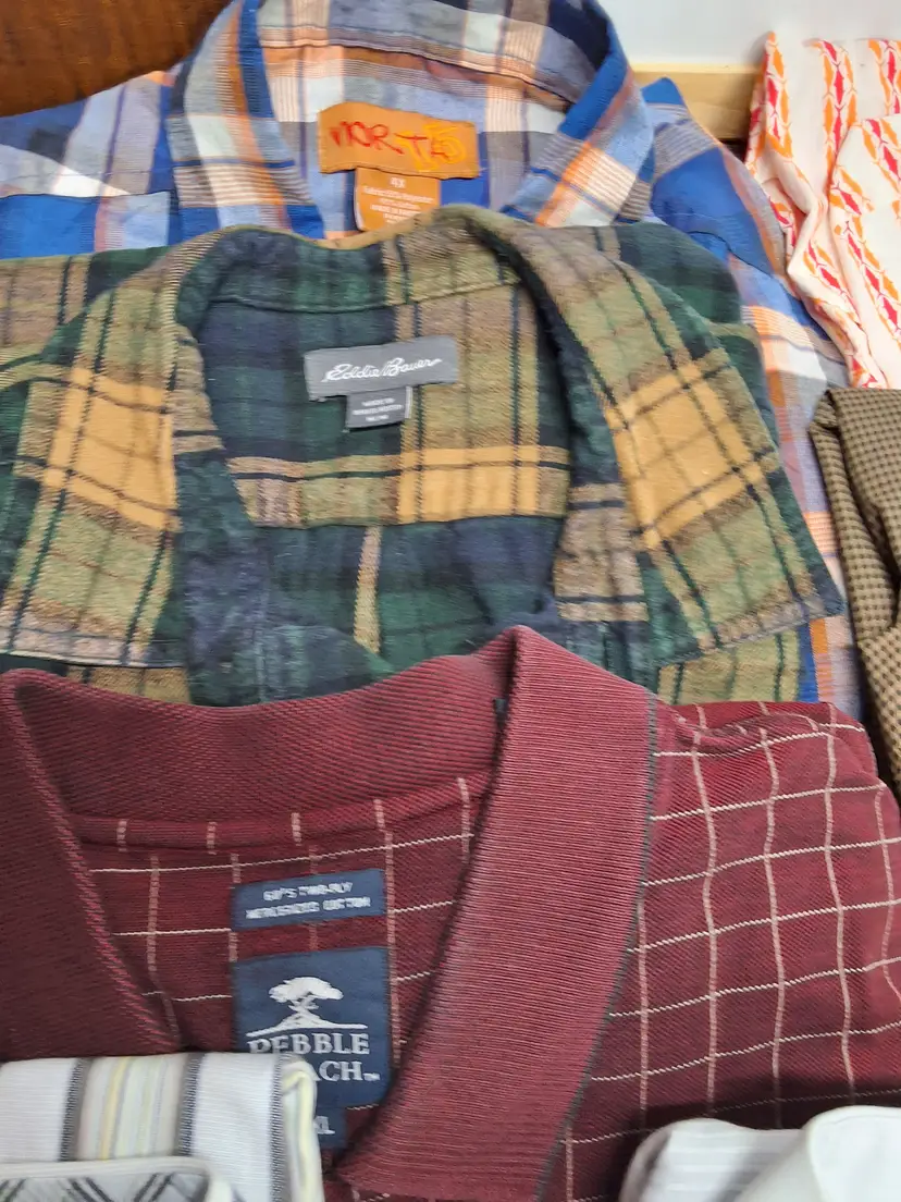 Lot of 15 mens shirts button up & pull overs various brands Tommy Eddie Bauer & more