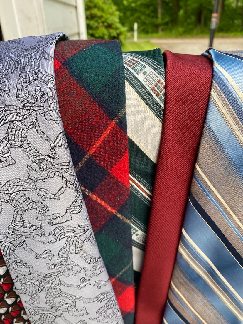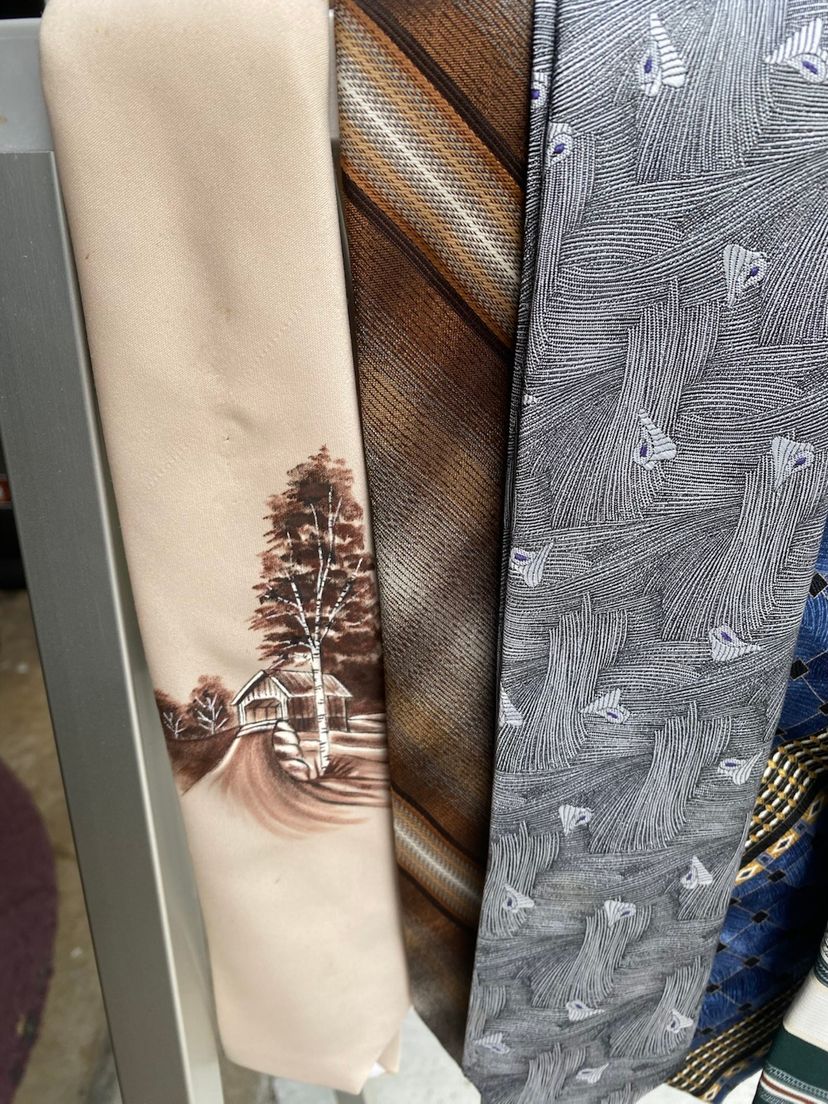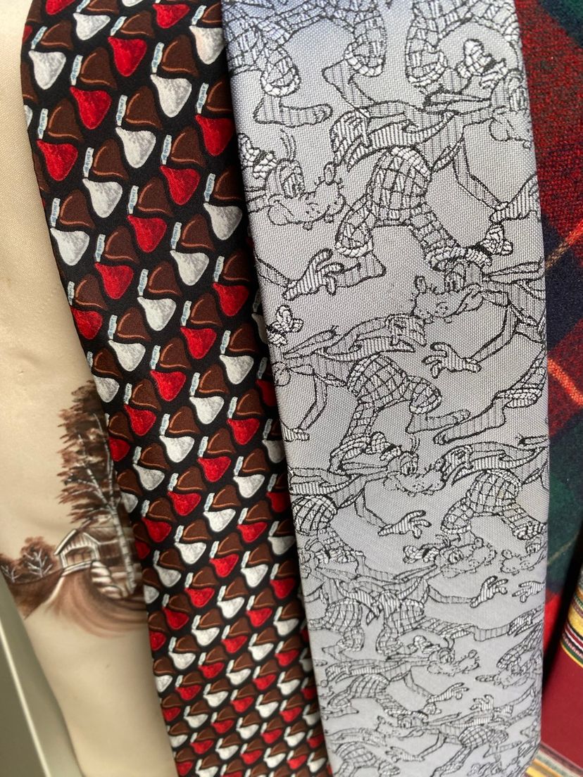 Lot Of 21 Vintage Ties. Some are silk and some specialty ( Hershey. Kiss) hand painted cover bridge. Disney made in USA tie. Great variety of colors