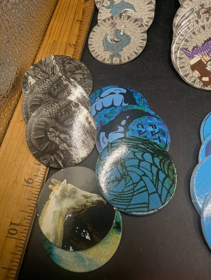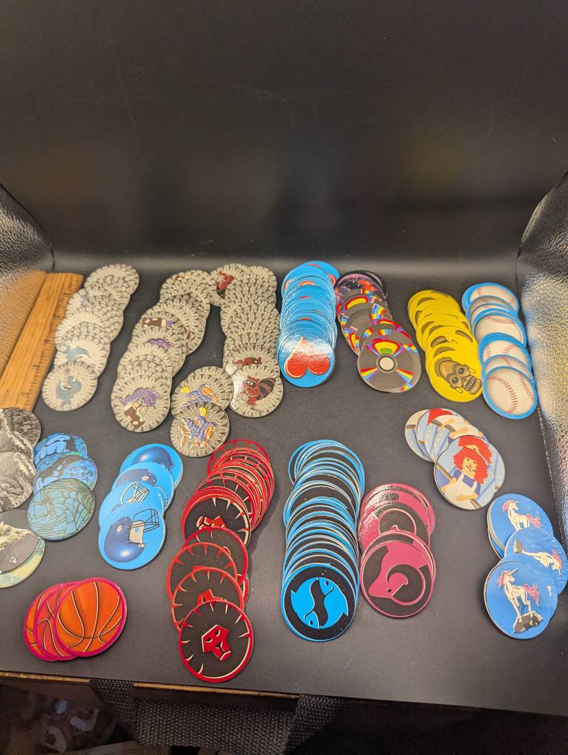 This is a fantastic Lot of 230 Vintage 90's Toy Game Pogs Milkcaps Animals, Sports, Zodiac, Etc. With Two Slammers. The prize of this lot would be the two slammers also included. Please see all pictures for condition and details.