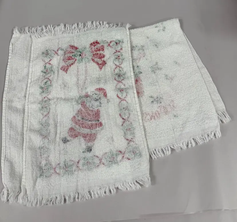 The product is a set of 3 Christmas hand towels featuring a Santa and angel design with fringe. Made of terrycloth material, the multicolor towels are perfect for adding a festive touch to your holiday decor. The X-10 brand ensures quality and durability, making these hand towels a charming addition to your collection of Christmas linens.