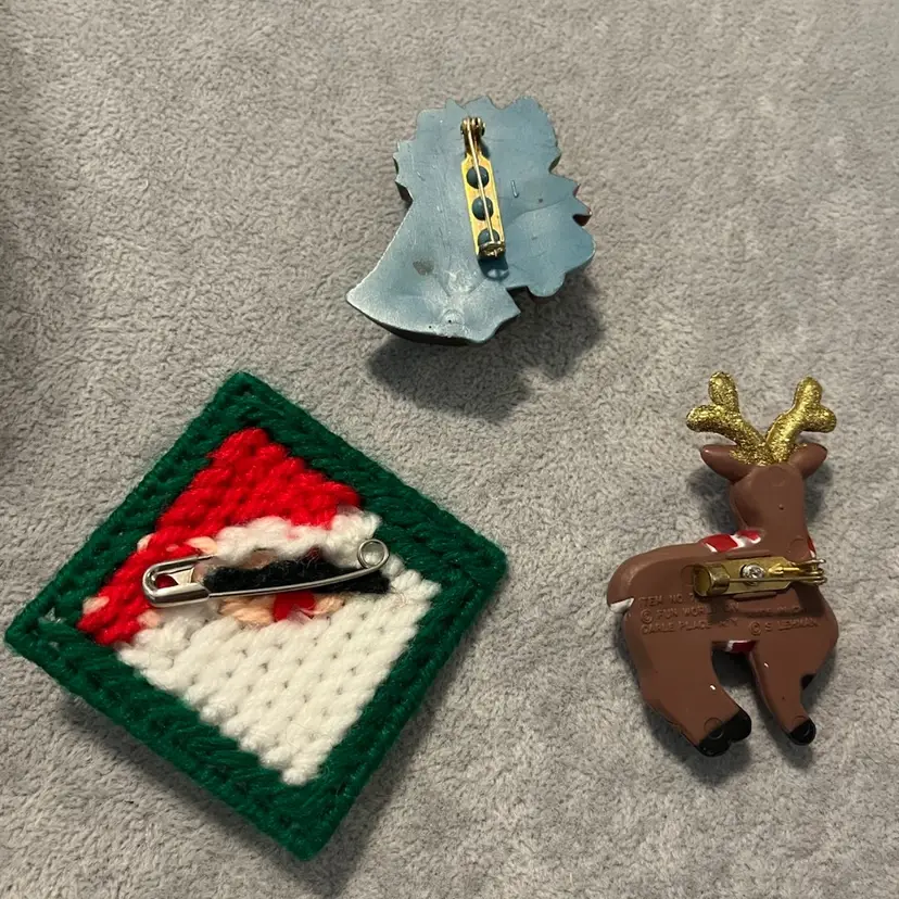 Yarn Santa 2” Plastic reindeer 2 1/4” Plastic bells 1 1/4”