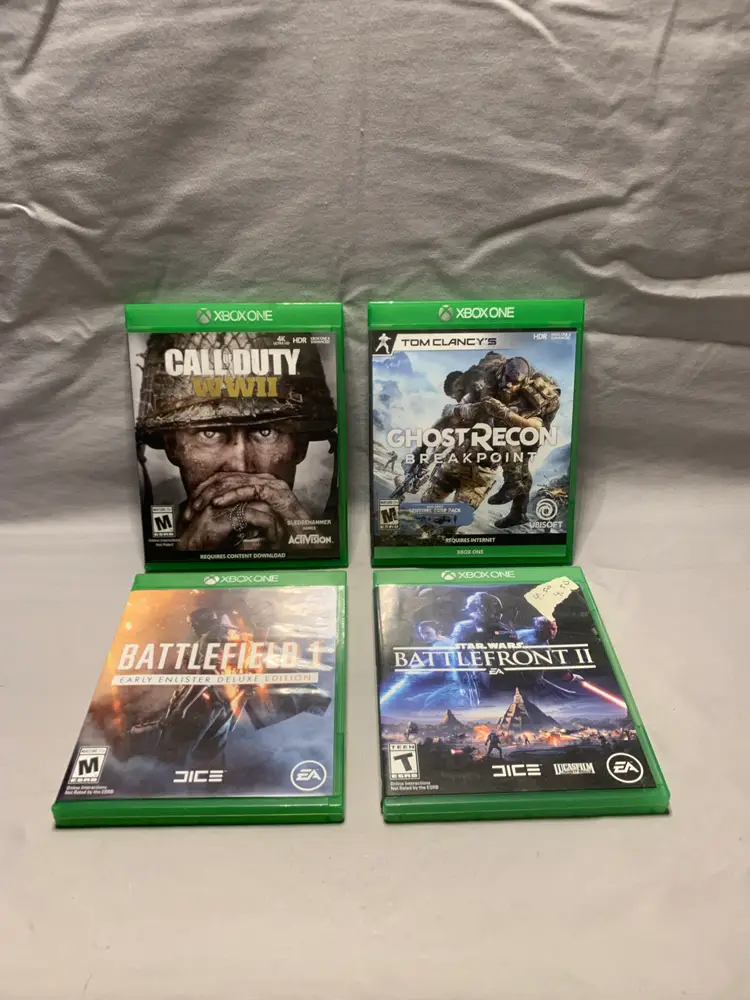 This product is a lot of 4 Xbox One games including Call of Duty, Ghost Recon, Battlefield 1, and Battlefield 2. These games are published by Activision and fall under the genres of shooter, fighting, battle, crime, action & adventure, shoot 'em up, and sports. The games are specifically designed for the Microsoft Xbox One platform and are region coded for NTSC-U/C (US/Canada) consoles. Players can enjoy a mix of intense action and adventure with these popular video game titles.