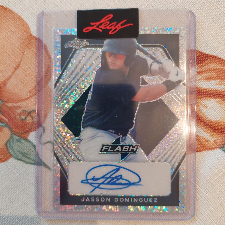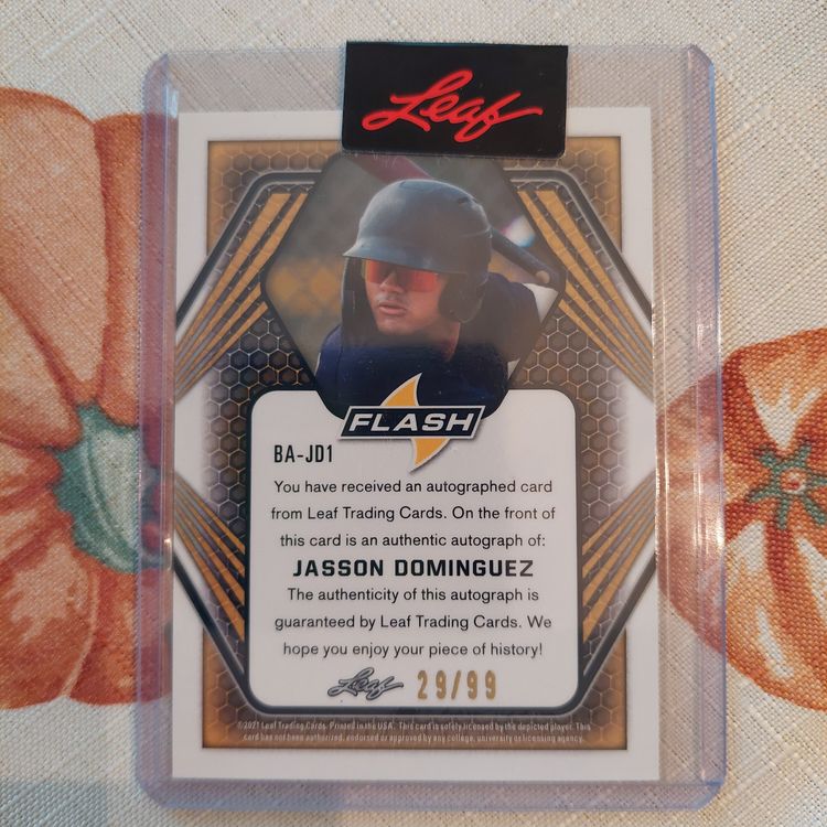 Jasson Dominguez auto. #29/99. 2021 Leaf Flash navy Parallel.