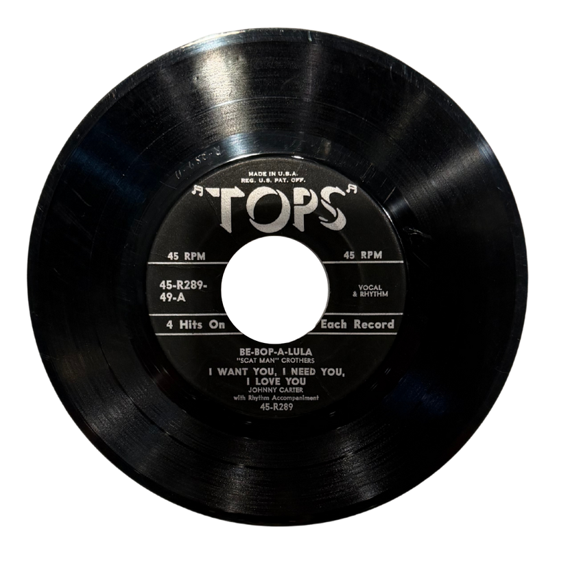 TOPS Records Side 1: Be-Bop-A-Lula (Scat Man Crothers) / I Want You, I Need You, I Love You (Johnny Carter)