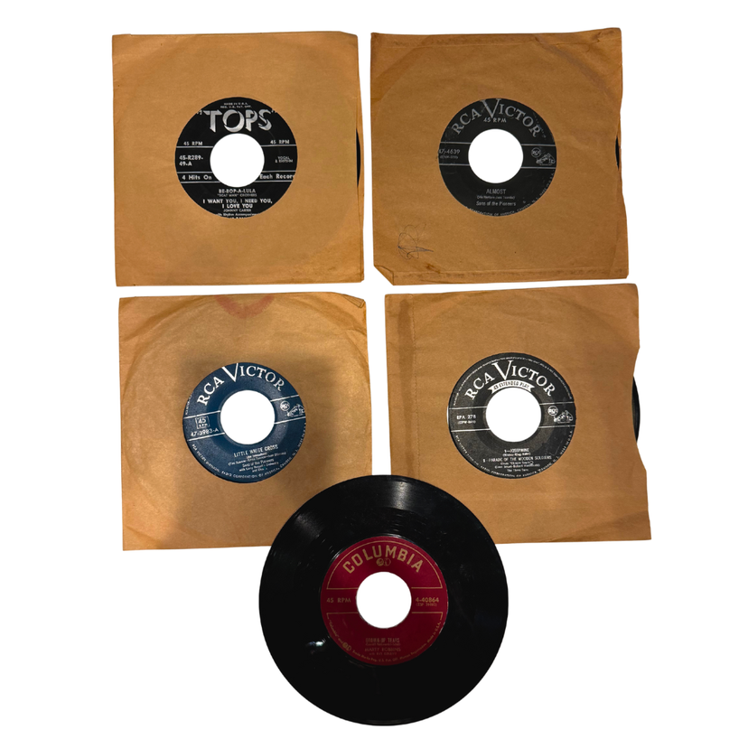 This is a lot of five (5) vintage 45 RPM vinyl records from the 1950s