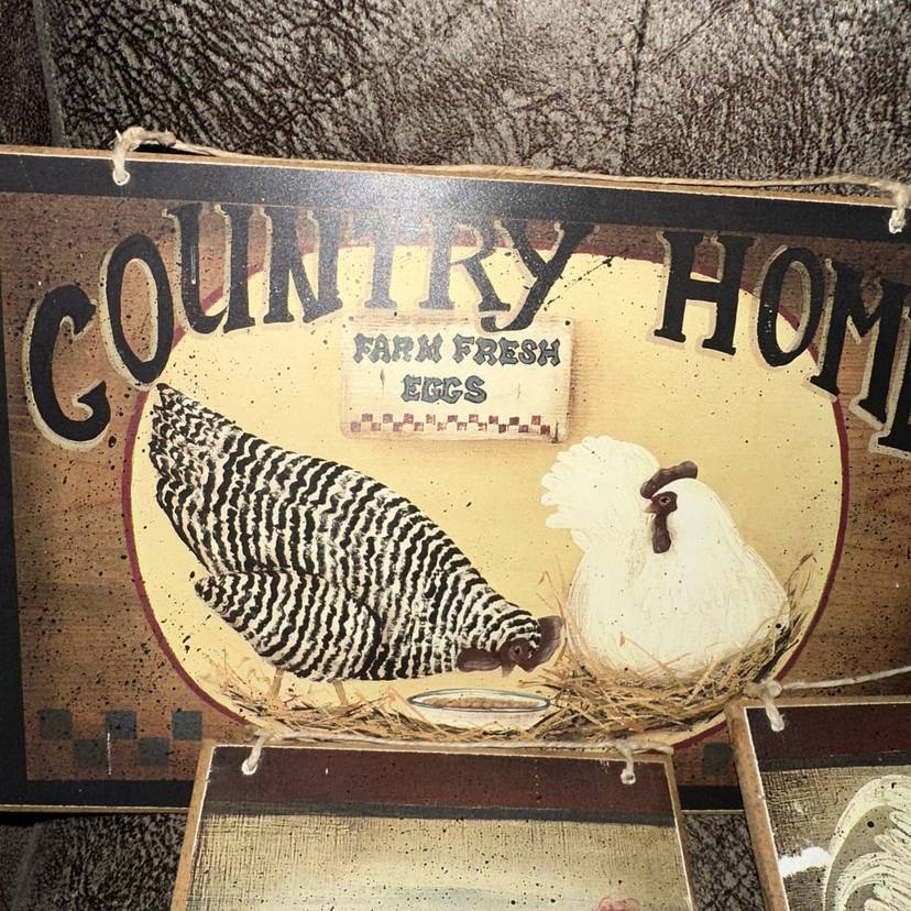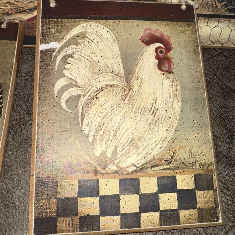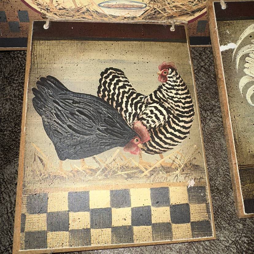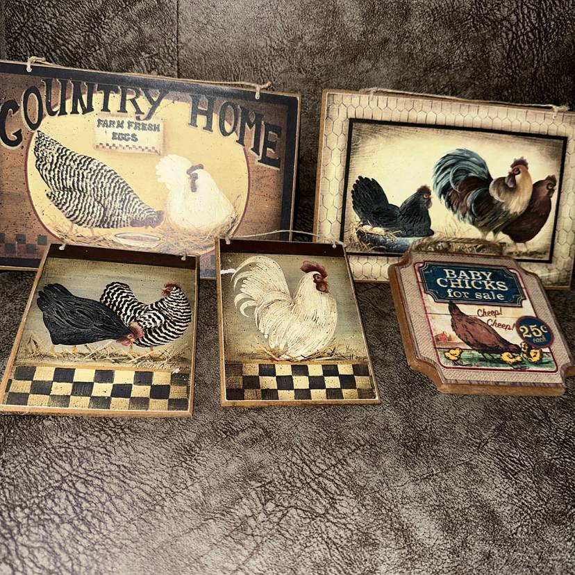 This lot of 5 Rooster Chicken wood wall hangings is a great addition to your rustic farmhouse decor.