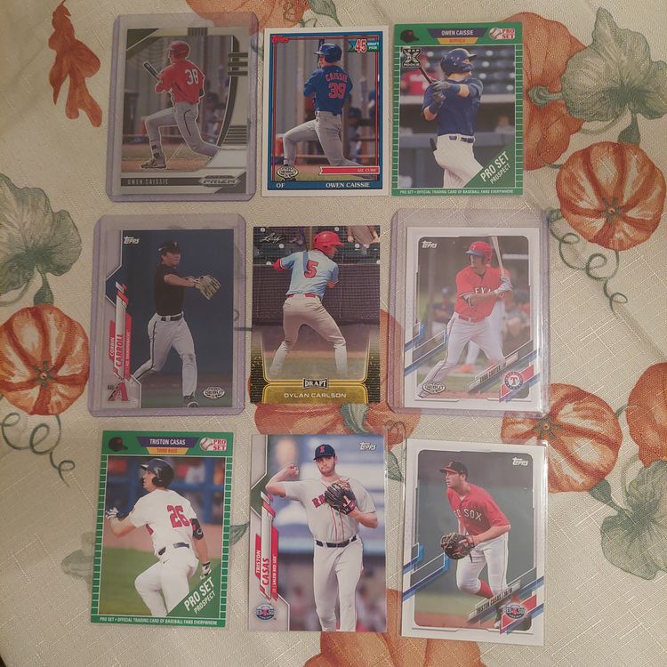 Players also included in the lot: Owen Caissie. Corbin Carroll. Dylan Carlson. Evan Carter. Triston Casas. Burl Carraway. Gabriel Cancel. Luis Campusano. Briam Campusano. Cameron Cannon. Antonio Cabello. Daniel Cabrera. Daz Cameron. Ruben Cardenas. David Calabrese. Isaiah Campbell. Slade Cecconi. Jazz Chisholm. Hyum-Il Choi. C.J. Chatham. Oscar Colas. Darryl Collins. Carlos Cortes. Pete Crow-Armstrong. ONeil Cruz. Trei Cruz. Jeff Criswell.