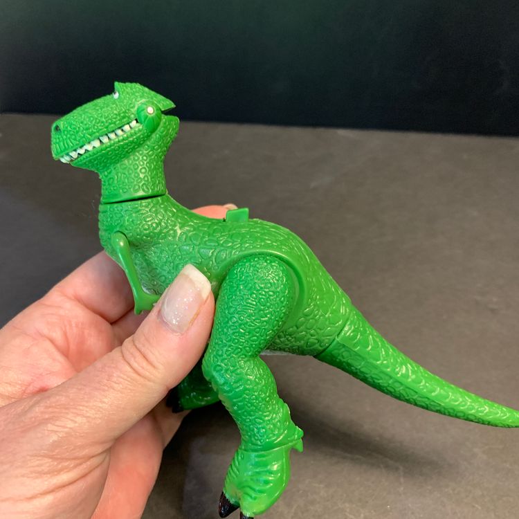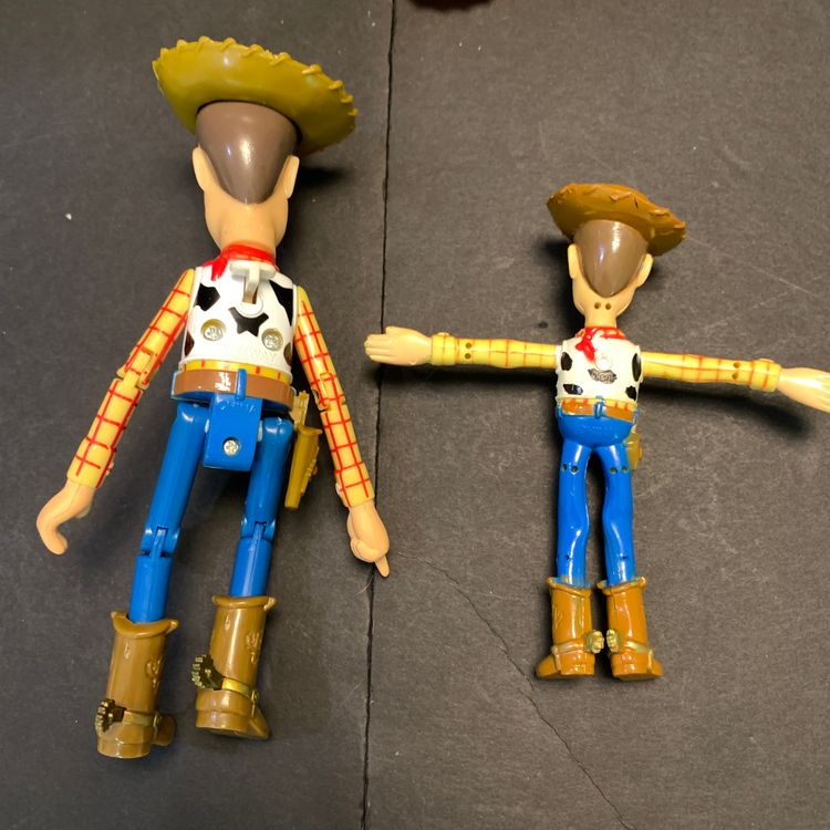 These were my oldest sons, and he did play with them. They may have some wear so please check out the photos. The bigger Woody measures 3 1/4 inches across, 2 inches wide and 6 1/2 inches tall. The smaller Woody measures 4 1/2 inches across, 1 1/2 inches wide and 4 3/4 inches tall. Rex measures 6 inches across, 3 inches wide and 5 inches tall. Hamm measures 4 1/4 inches across, 2 1/2 inches wide and 2 1/2 inches tall. Slinky Dog Measures 2 inches across, 3/4 inches wide and 1 1/4 inches tall. Mr. Spell measures 2 1/4 inches across, 1/2 inch wide and 2 inches tall. Weighs 9 ounces. If the actual postage ends up being less than what you paid, you will be refunded for anything over one dollar.