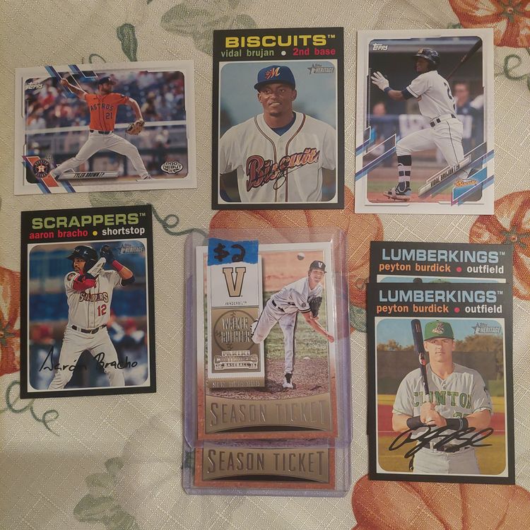 JJ Bleday 2020 Topps heritage Minors scratch off Insert. Hunter Bishop 2020 Topps heritage Minors scratch off Insert. Nick Bush 2021 Panini Prizm Draft Picks pink Velocity Parallel.