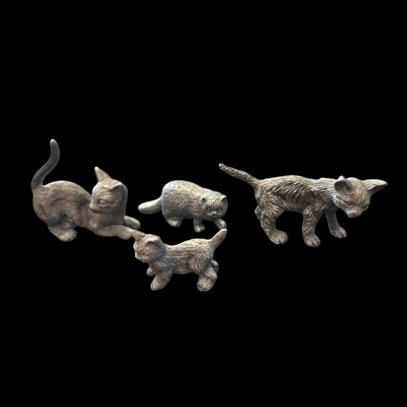Lot of 4 pewter cats ๐โโฌ All in good condition. 0.75-2โ-0.75-1.5โ