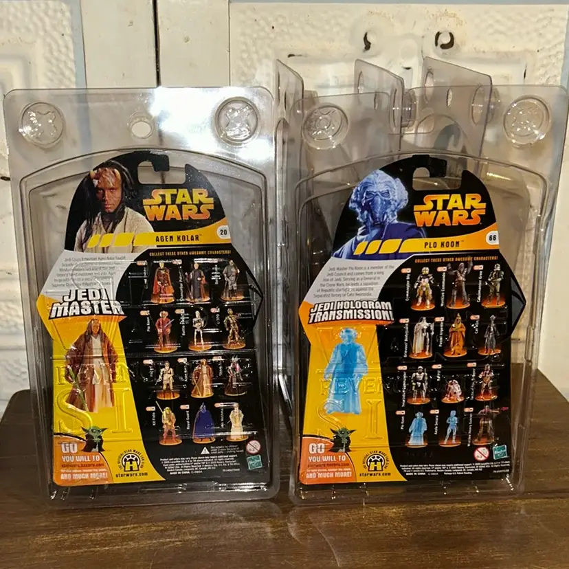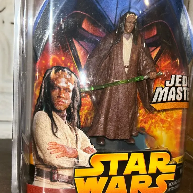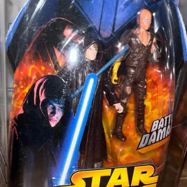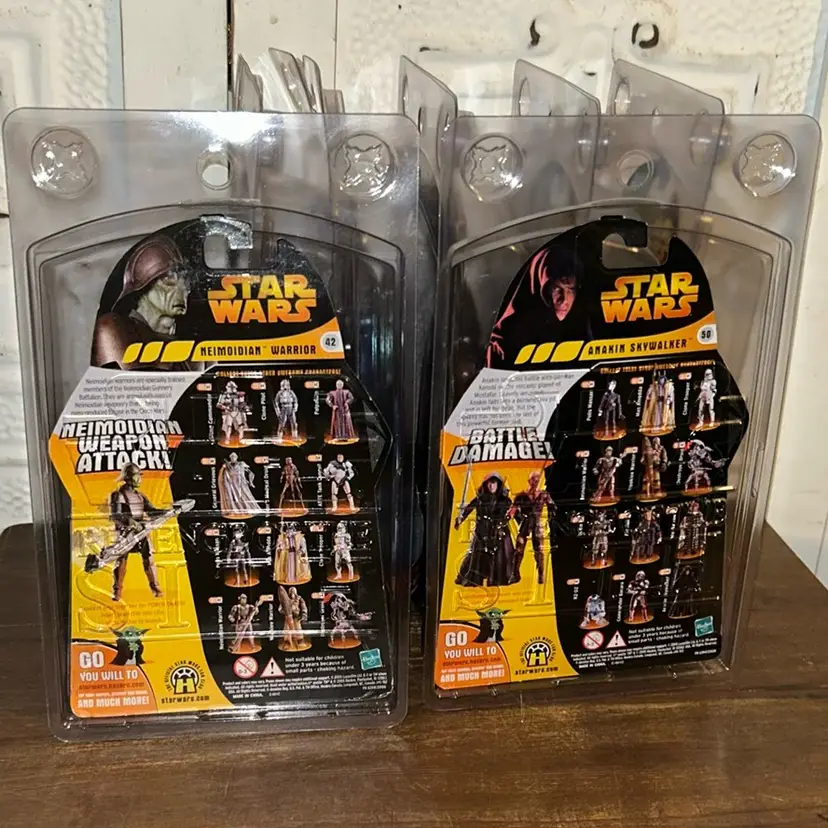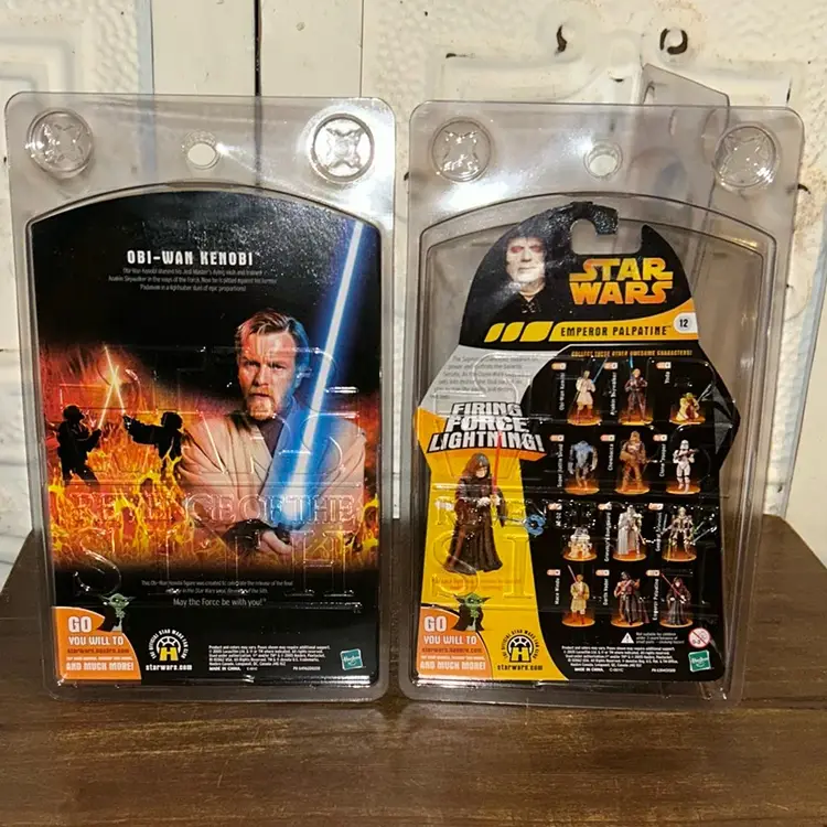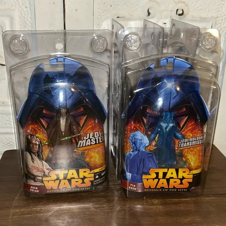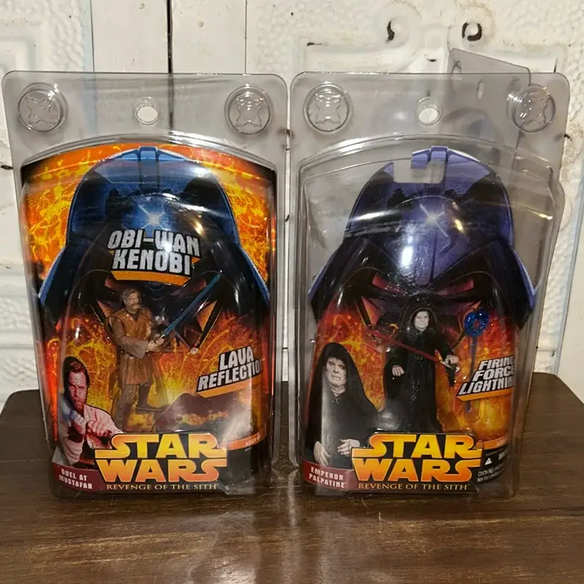 This listing is for a lot of seven Star Wars, revenge of the Sith action figures with clear protector cases.