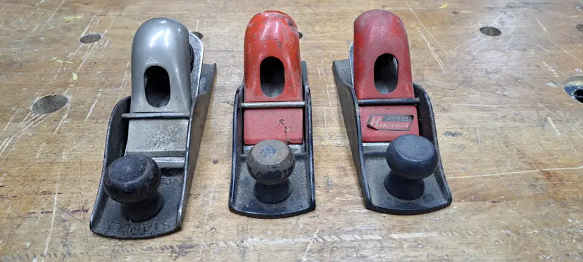 #2. Stanley Handyman H1247 Block Plane still has it's Decal I have not found any good dating references for the Handyman tool line ,but they did change over time. Handyman tool line was marketed to the home owner and replaced the Defiance line in the the mid 1950's and where produced up to the early 70's.