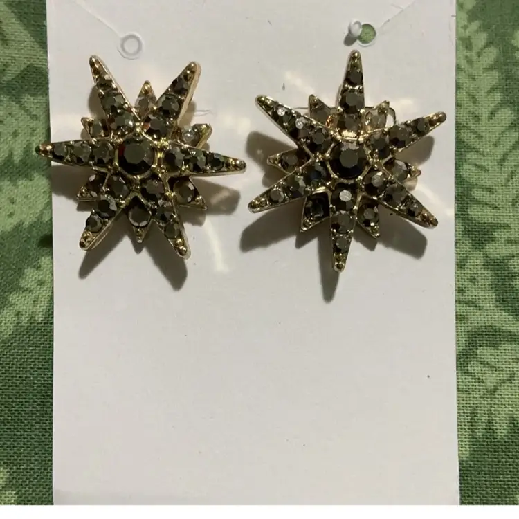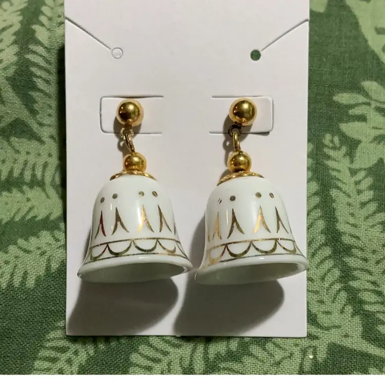 Avon porcelain bells measure 1β1/2 & Goldtone stars measuring 1β & Christmas tree dangling dangl measure 2β