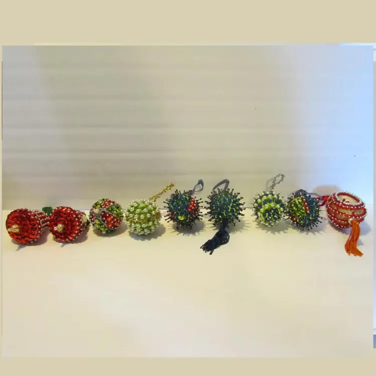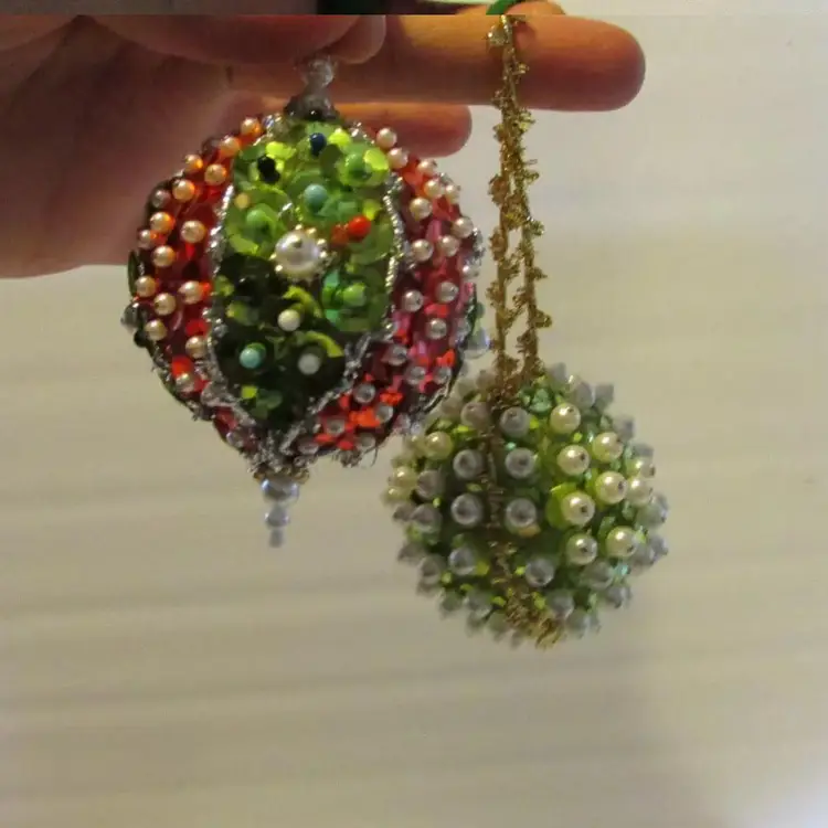 This is a lovely set of ornaments, there is some wear, but overall a nice set to display. The largest is about 6" x 2 3/4" x 2 1/4" and smallest is 2 1/4" x 2 1/4" round. This is shipped from a smoke free home. Thanks for looking! locbc4