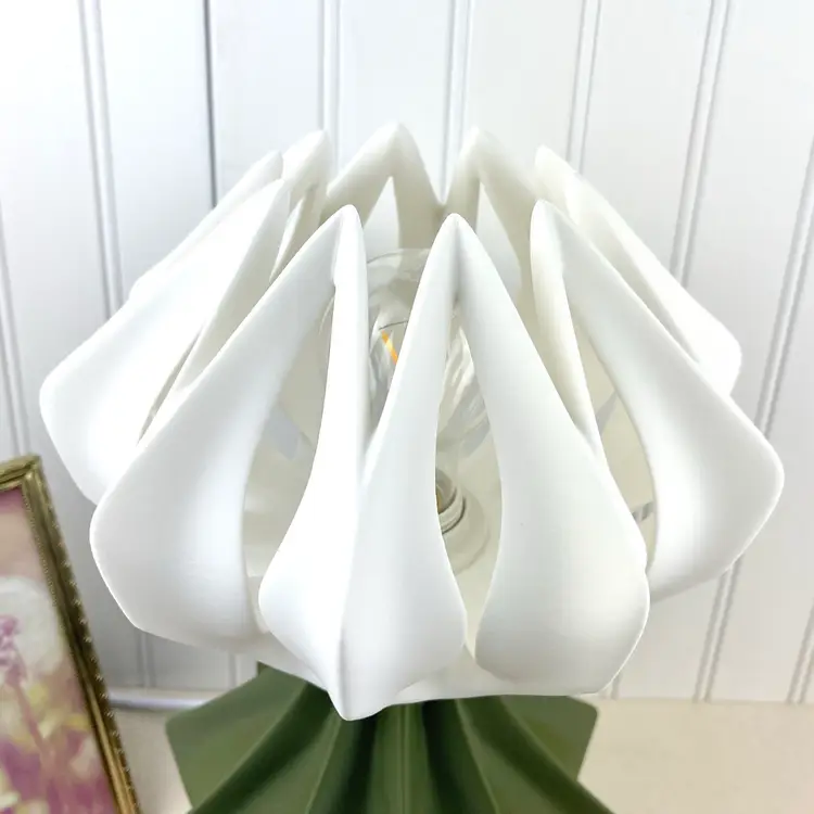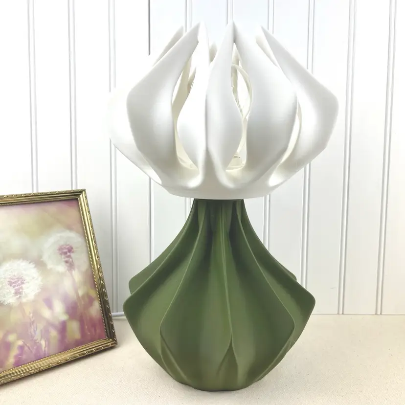 Elevate your space with this captivating 3D printed table lamp, inspired by the graceful form of a blooming lotus. Designed with a sculptural white shade and an elegant base, this lamp blends nature and modern design to create a stunning centerpiece for any room. Lightweight yet durable, it’s the perfect ambient light for bedrooms, living rooms, or creative workspaces. This lamp is the perfect combination of art and function!