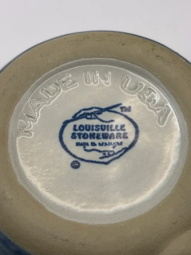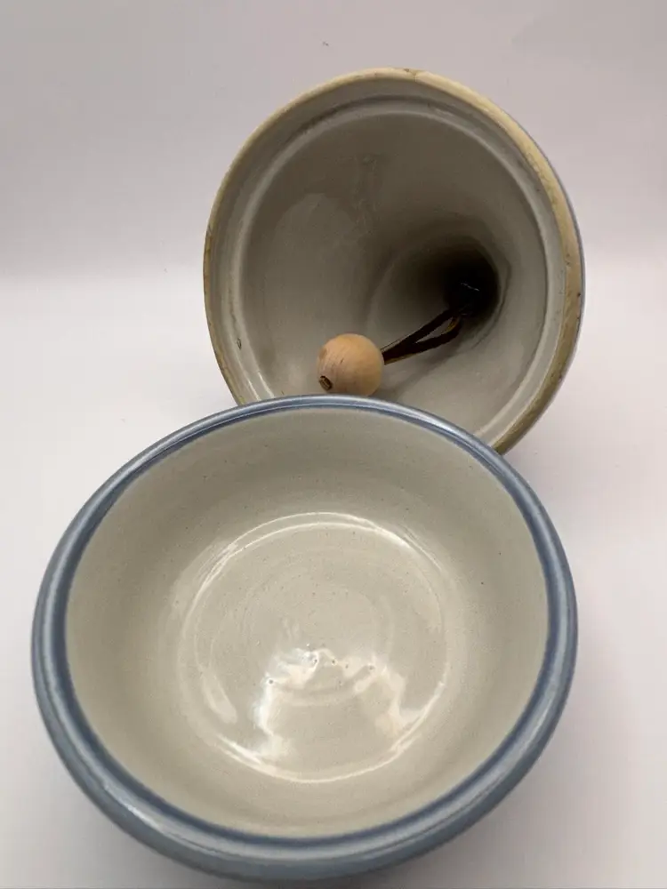 Louisville Stoneware Pottery Bunny Rabbit Bell Bowl Covered Dish Leather Ears. Two piece set. Measures approximately 7” high Good used condition. No chips, cracks, or repairs.