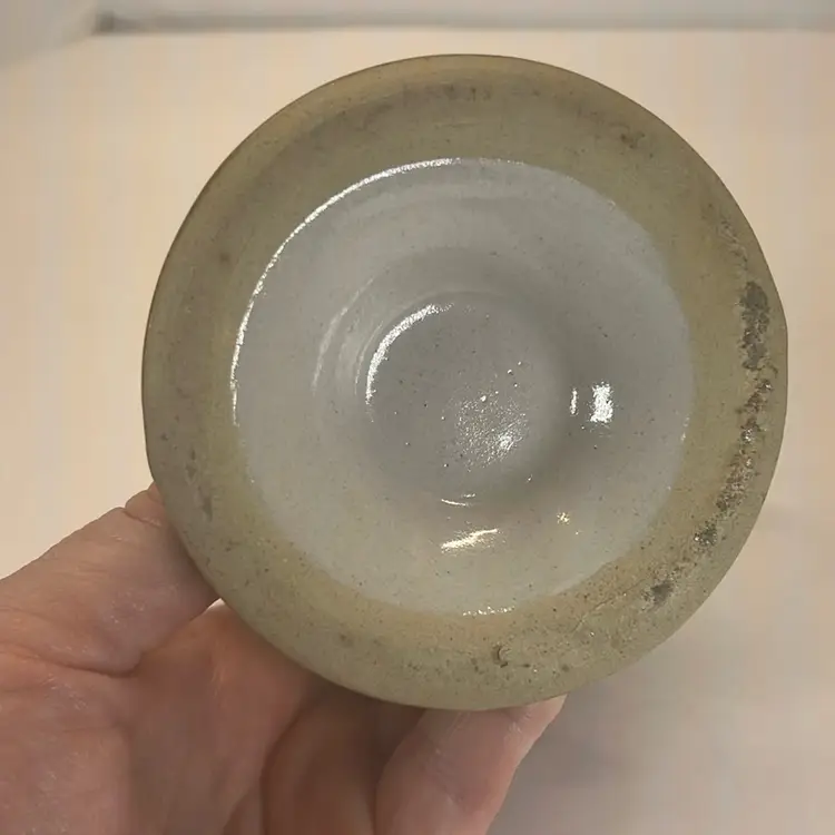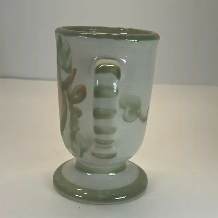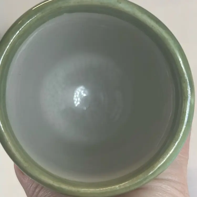 One has solid color handle. One has a striped handle. One has crazing in the inside bottom .5 inches tall. No chips or cracks