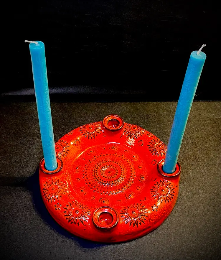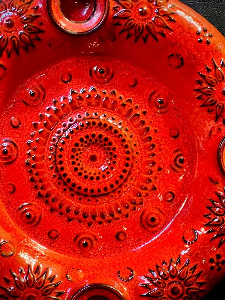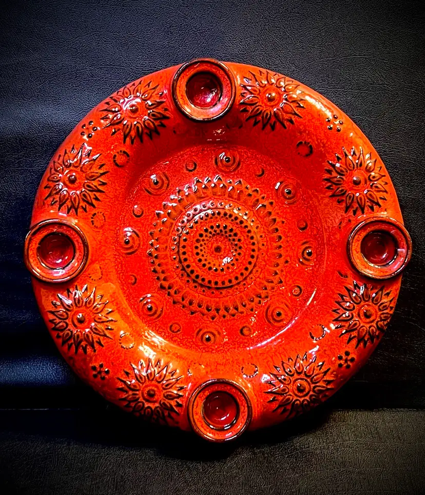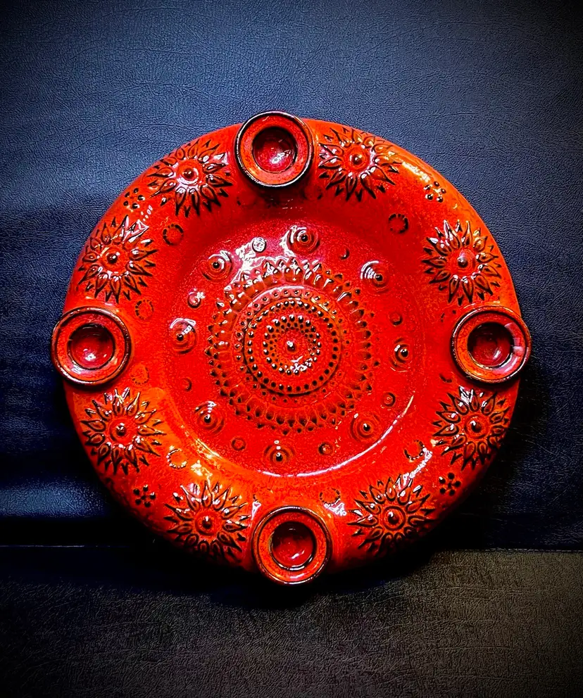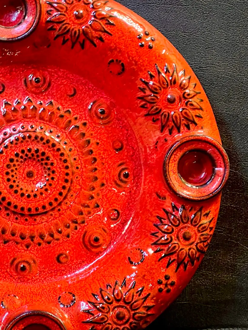 🖤This piece is an absolute stunner! Highly collectible mid century West German “Fat Lava” pottery pieces are getting more difficult to come by! This gorgeous advent wreath is from my personal collection, and she’s looking for a new home. She has a lovely fiery red glaze, 10” diameter, and in excellent vintage condition!