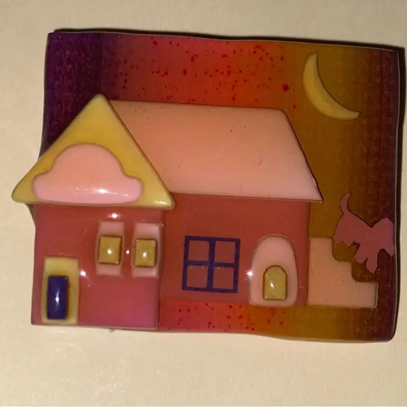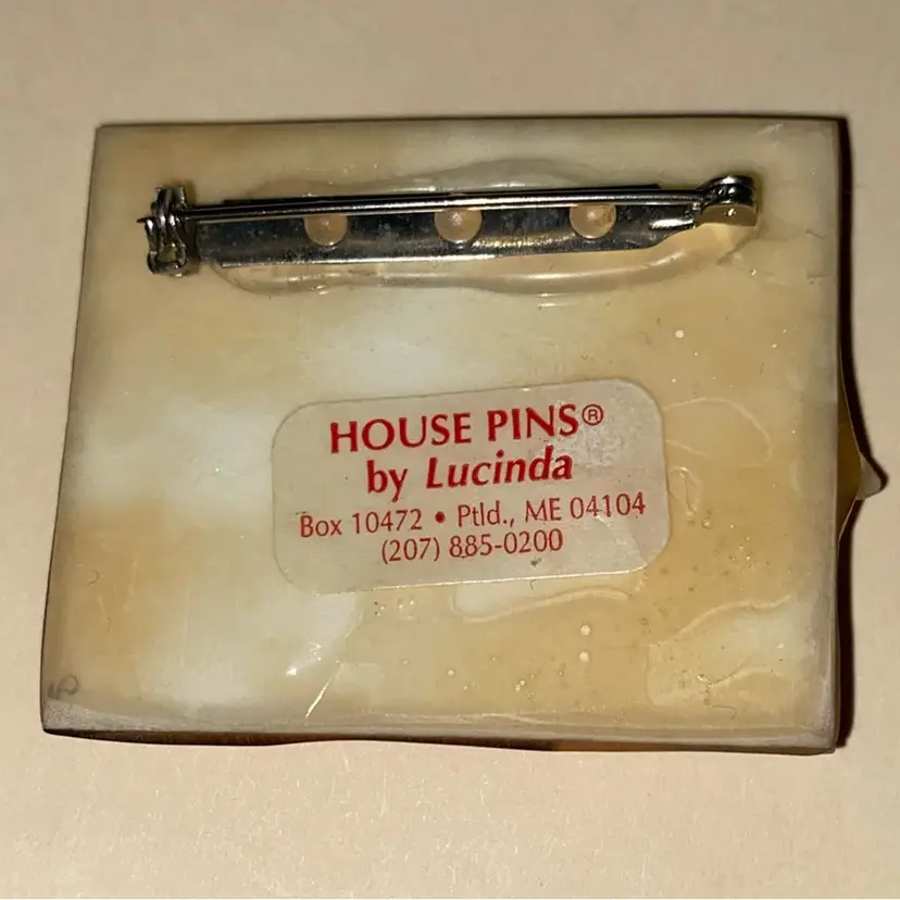 Condition: Pin is detailed and dimensional and in excellent vintage condition with a very shiny finish. Has ‘House Pins by Lucinda’ sticker on the back.
