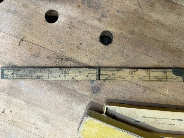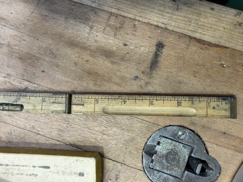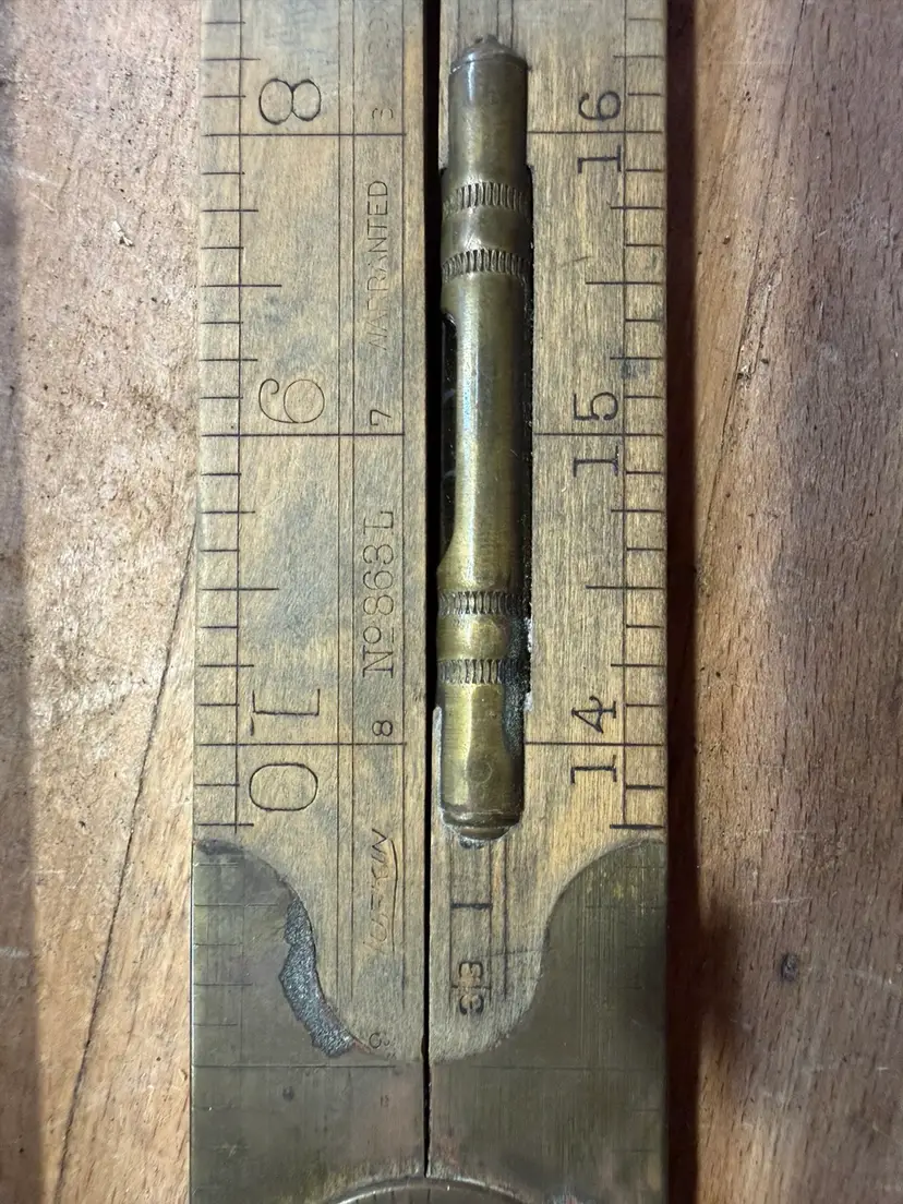 Lufkin No. 868L folding rule with original box and vial intact. See photos for conditions. Please let me know if you have any questions or would like any specific photos.