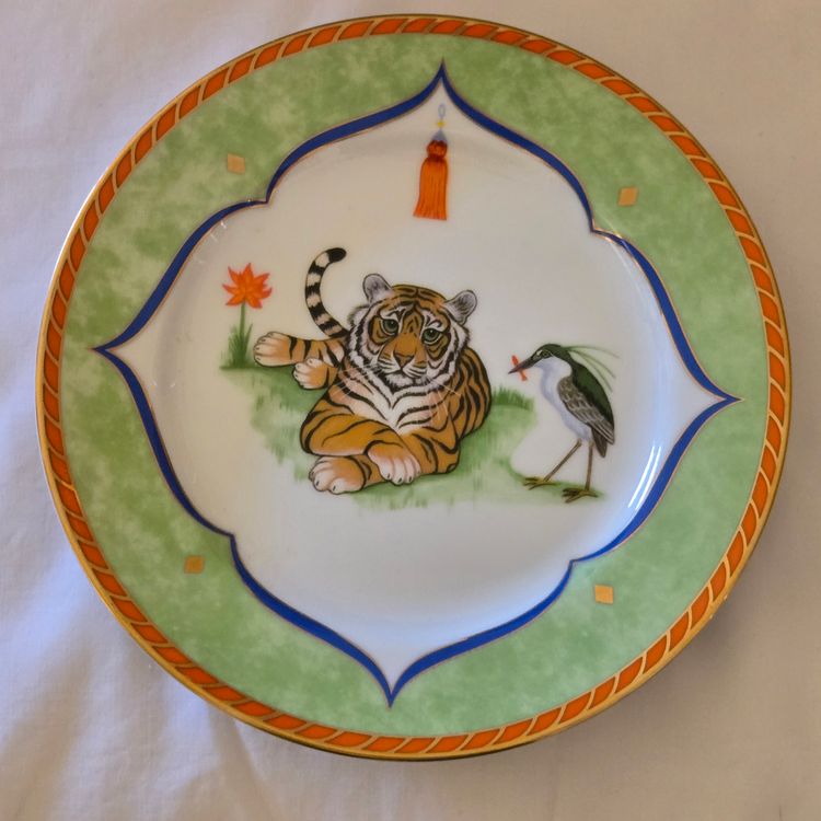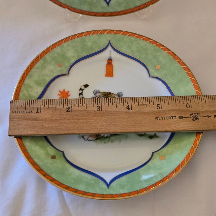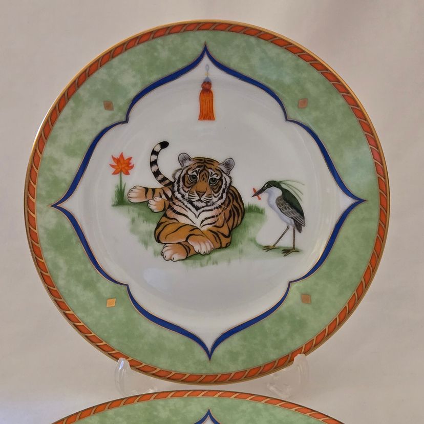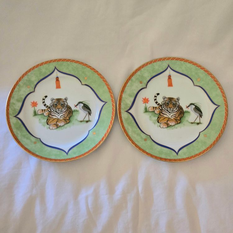 Lynn Chase Tiger Raj Bread and Butter Plate 6½" Diameter Set of 2 Vintage 1991. Used condition simply due to the bit of dirt on the bottom and fingerprints from handling otherwise there are no signs of use. Please view all the photos and please ask any questions prior to purchase when possible.